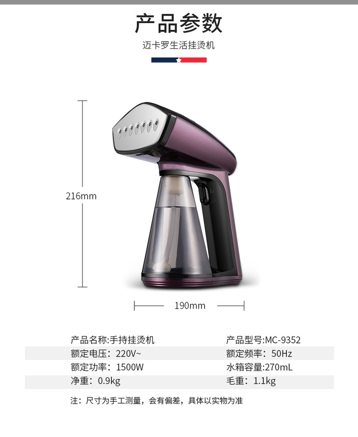【迈卡罗】Macaiiroos/迈卡罗挂烫机家用蒸汽熨斗手持熨烫机烫衣服烫衣机MC-9352
