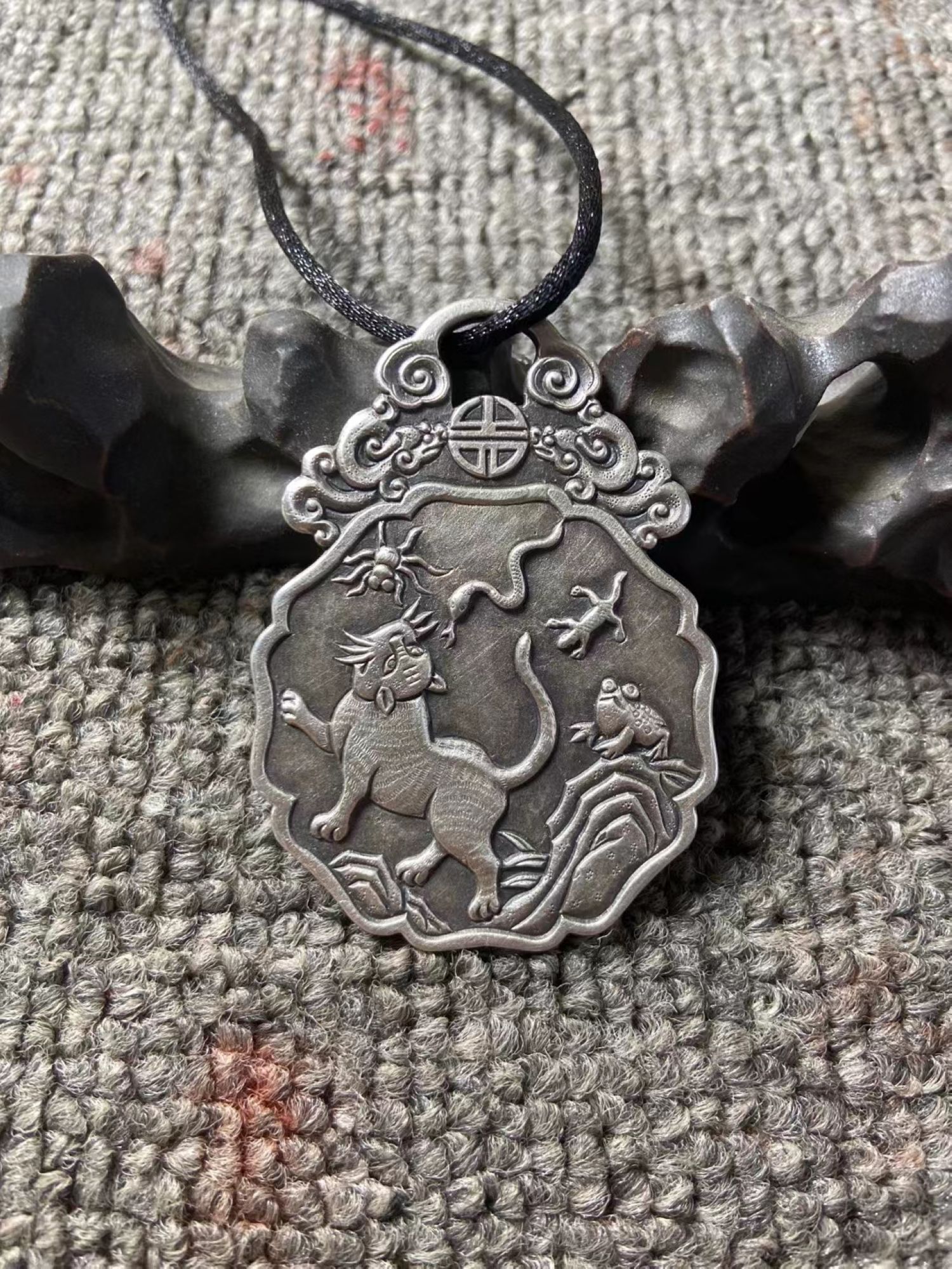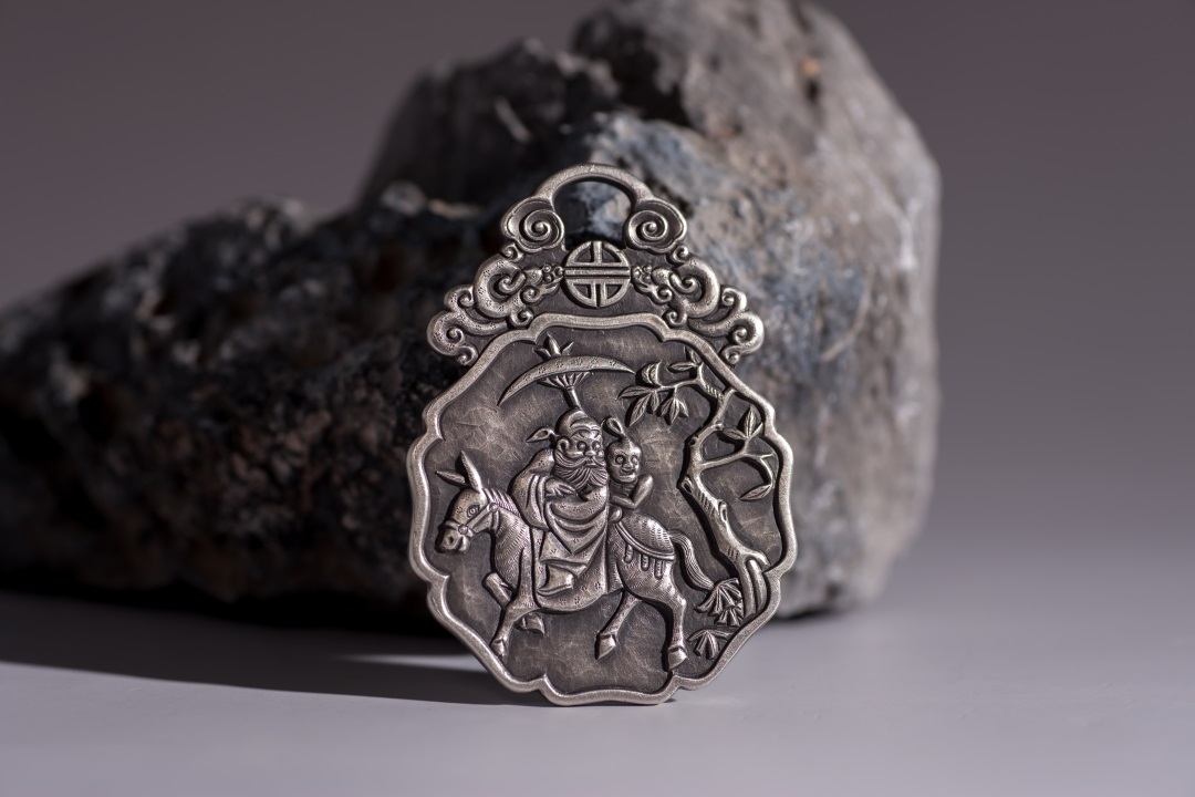 矩德泉坊 纯银手作 钟馗挂花高浮雕(6.2厘米版)360