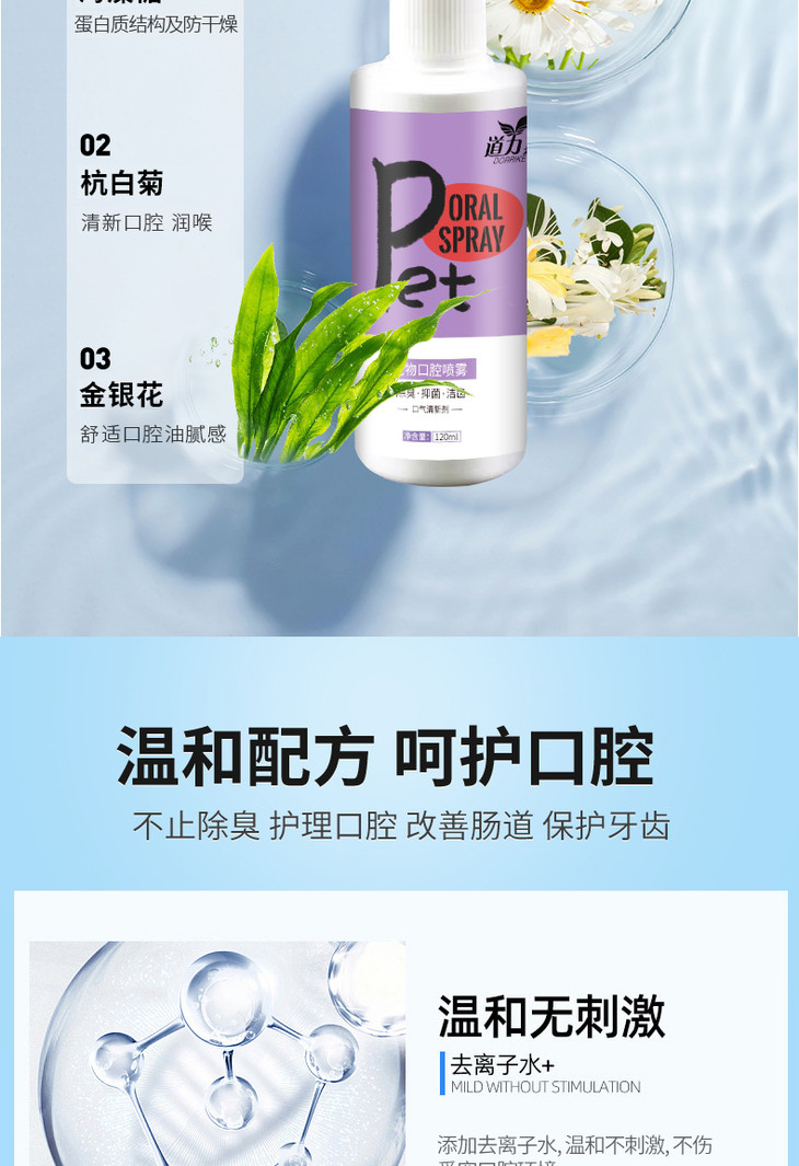 道力其 宠物口腔喷雾120ml狗狗猫咪口腔清洁除口臭漱口水可食用