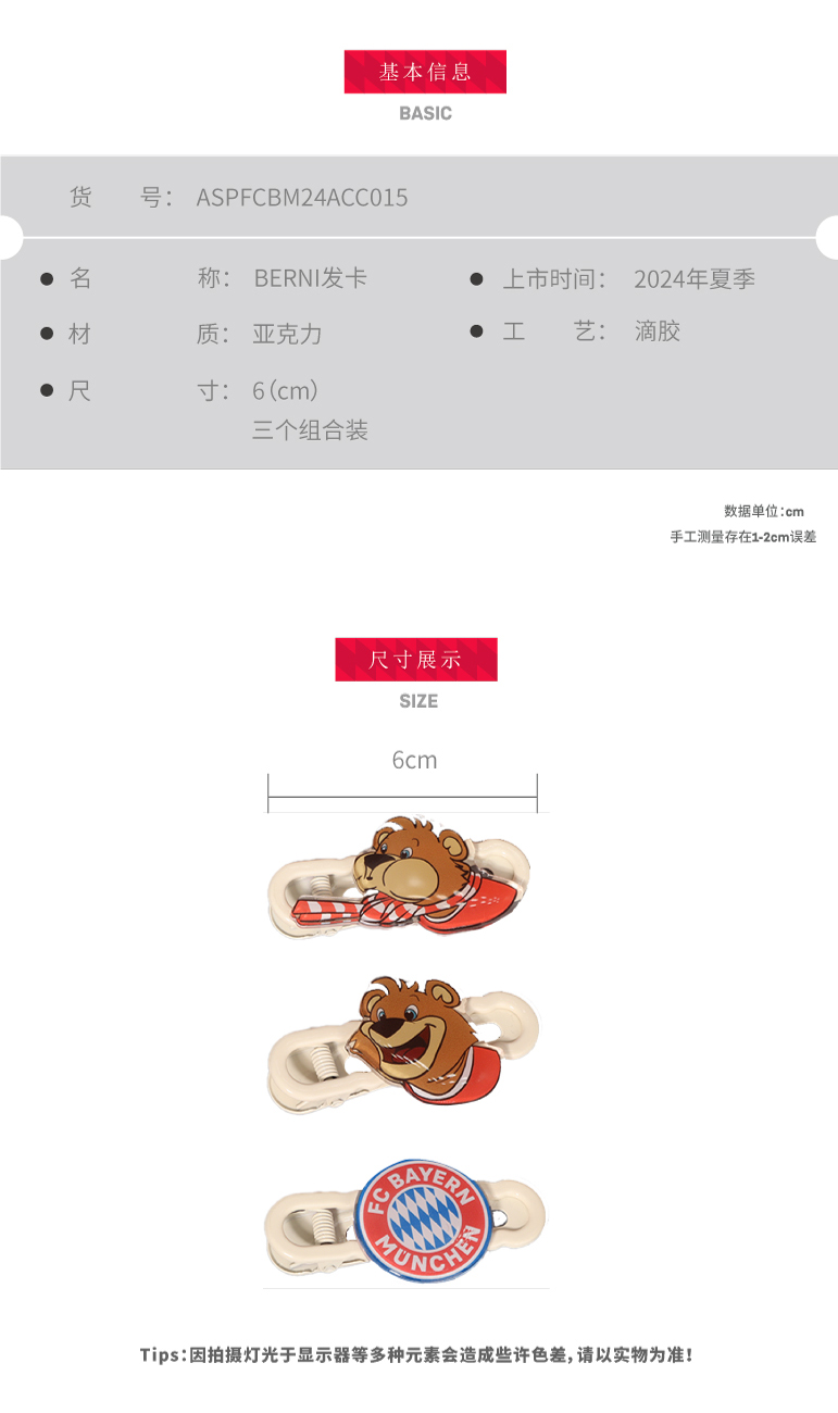 【官方正版】拜仁慕尼黑足球俱乐部|可爱BERNI熊发卡女生头饰礼物
