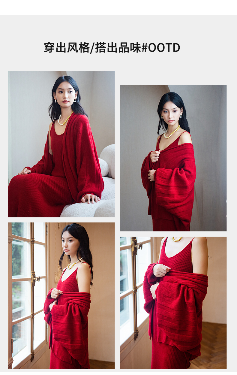 【门店同款】ENJOY冬季“暖冬软糖”坑条蝙蝠袖开衫 166746523