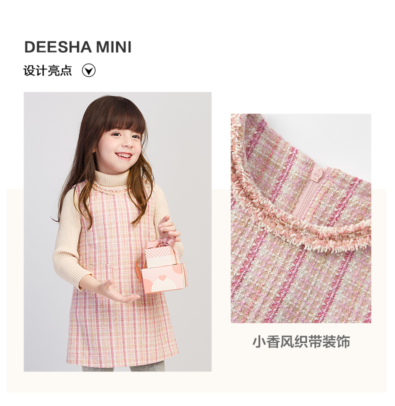 笛莎童装女童连衣裙2020冬季新款儿童时尚小香风裙子宝宝背心裙