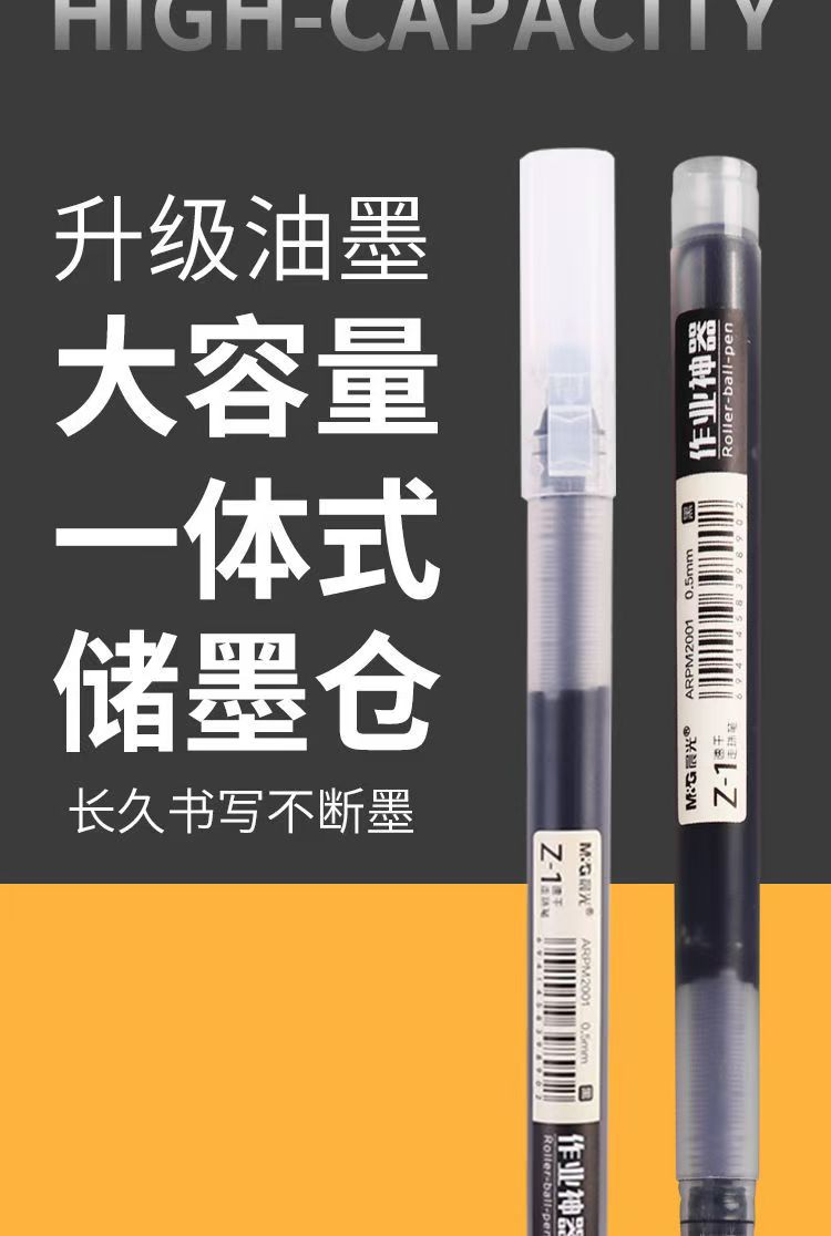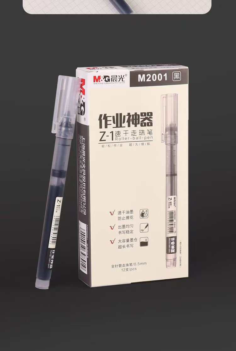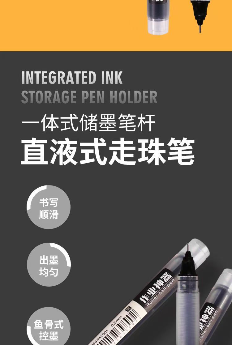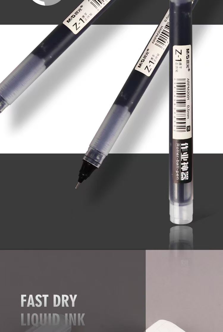 晨光直液式走珠笔学生考试专用0.5mm速干全针管黑色巨能写中性笔