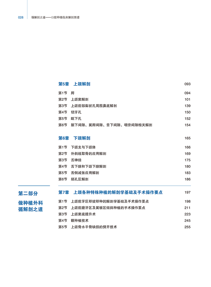 本书以“循解剖之道”为核心理念,系统梳理口腔种植相关颌面部骨、肌、血管、神经等解剖结构,结合高清冰鲜实体解剖图、CT三维重建及手术实景图,立体呈现上颌前牙即拔即种、翼板区倾斜种植、上颌窦底提升、颧种植等关键术式的解剖要点与操作步骤;针对下颌颏孔区、舌侧减张、外斜线取骨及并发症预防,提供规避神经血管损伤的精准指引;同时详述腭部、鼻腔、上颌窦、翼腭窝、颞下窝等深部间隙的解剖标志与临床安全路径,是一部融合基础解剖、数字影像与临床实践的口腔种植“手术地图”。