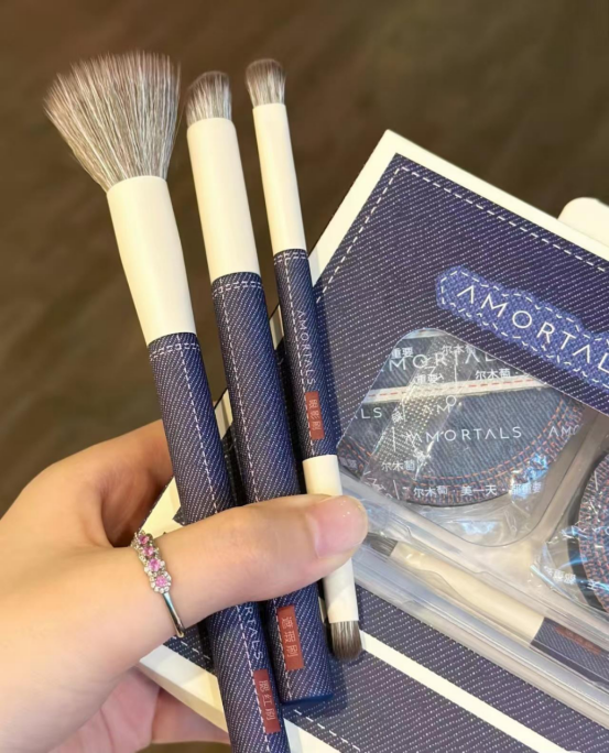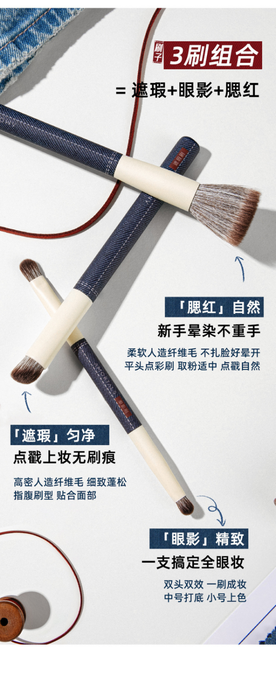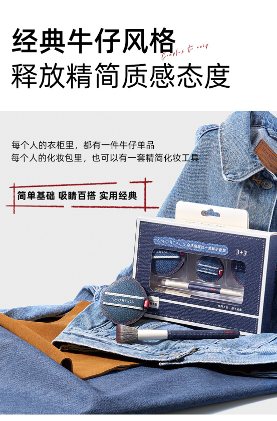 新手化妆的天选搭子它!来!了! 尔木萄新品化妆套装 新出的套装牛仔设计也太酷了💙 🥳3粉扑+3刷子的搭配精简又实用 对新手小白不要太友好 每个上面都贴心的写了功能标签🙌 不会再傻傻分不清了~ (图中牛仔袋子为拍摄道具)