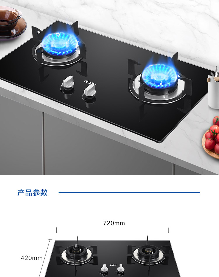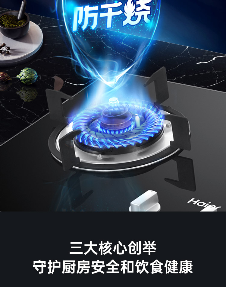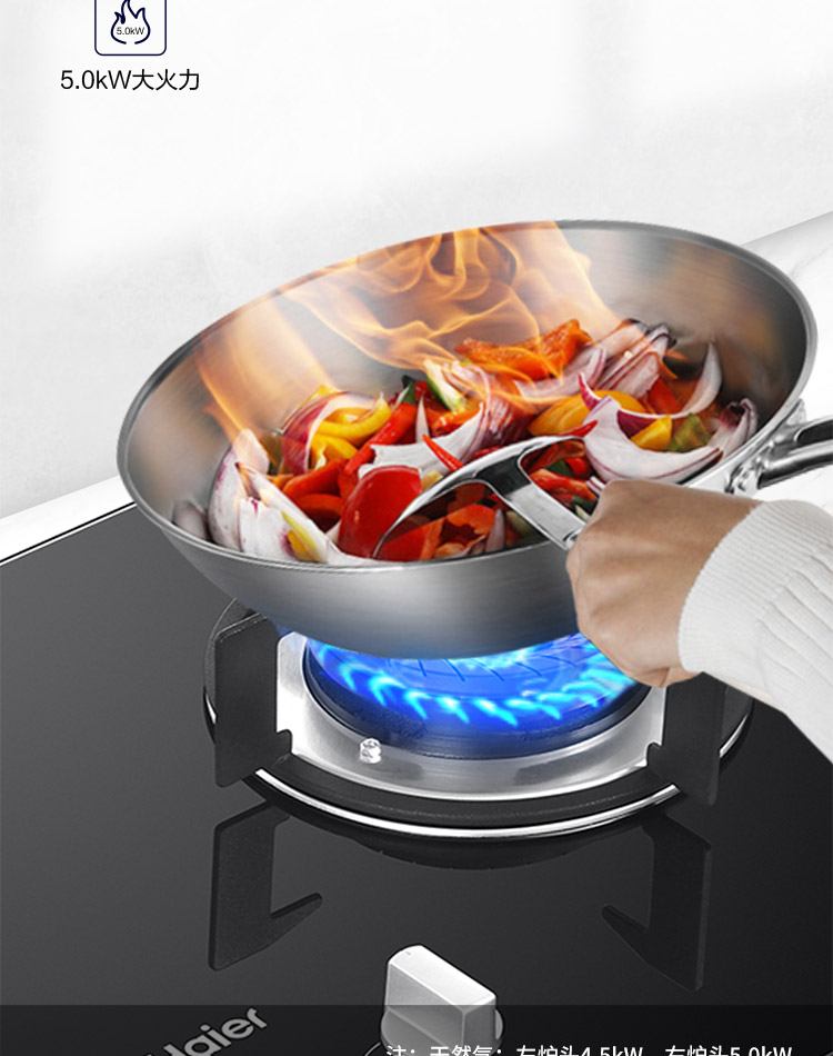 cdfh0511pfj 海尔(Haier)嵌入式 双眼灶 智能防干烧灶 5KW大火力 燃气灶具家用 JZT-QHA7B0(天然气)