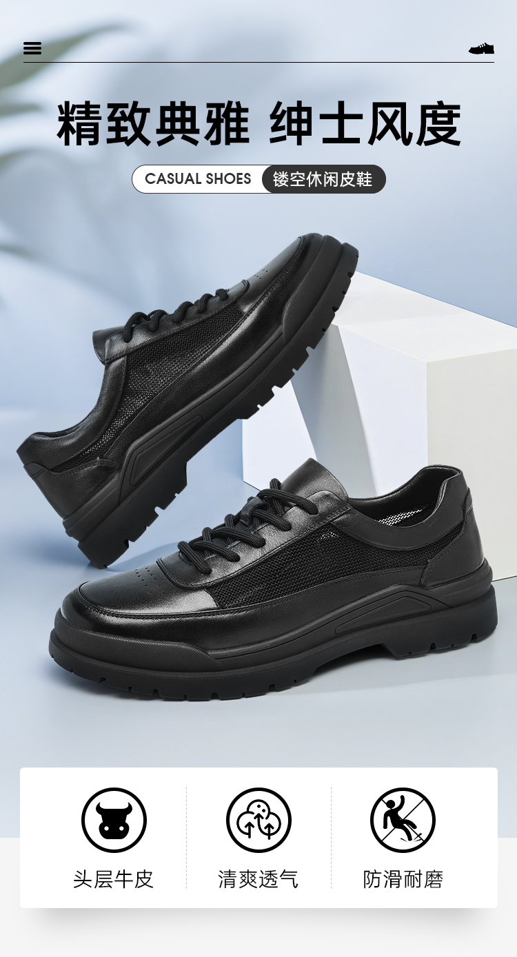 【防滑镂空休闲皮鞋】透气清爽牛皮皮鞋商务通勤凉皮鞋XP503