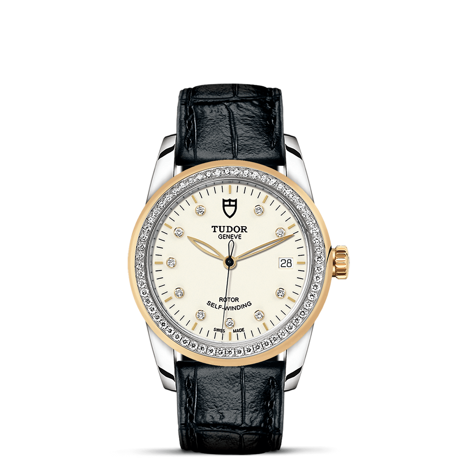旋入式上链錶冠,饰以帝舵表标志;精钢覆有0.1毫米18K黄金薄层