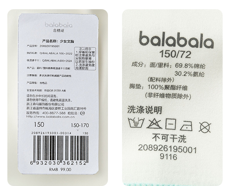 【balaOne】巴拉巴拉女童内衣发育期儿童小背心防走光文胸运动款
