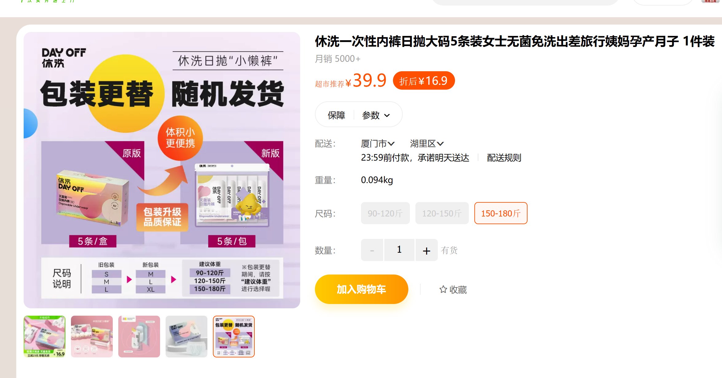 【品名】: 日抛“小懒裤” 一次性灭菌内裤