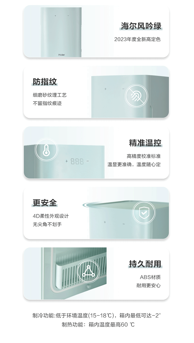 海尔(Haier)12升单门迷你小冰箱医药美妆母婴用品便携制冷制热双重模式 车载冰箱 租房宿舍办公室静音电冰箱 风吟绿