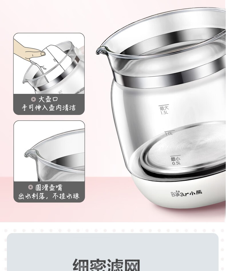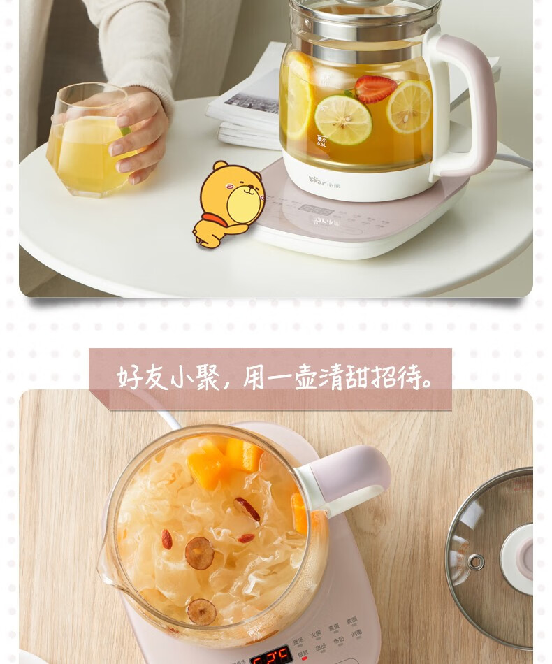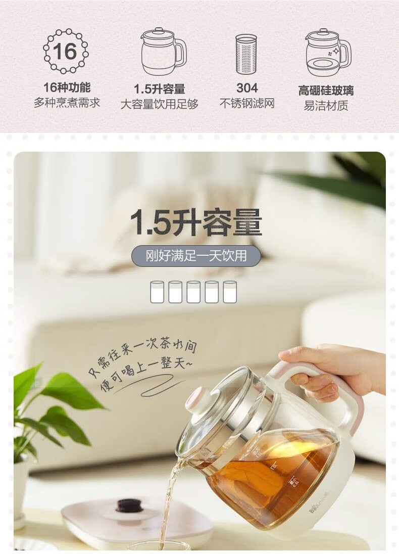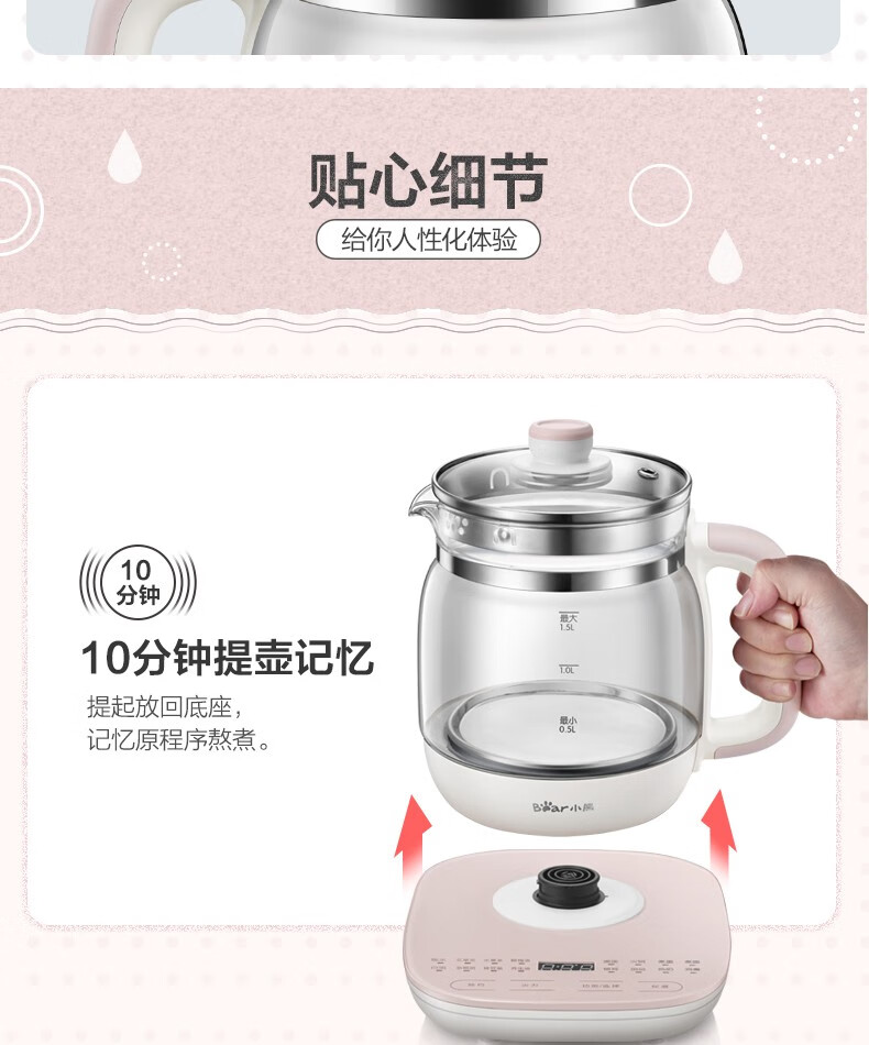 小熊(Bear)养生壶 煮茶器 煮茶壶电水壶烧水壶1.5L触屏玻璃花茶壶