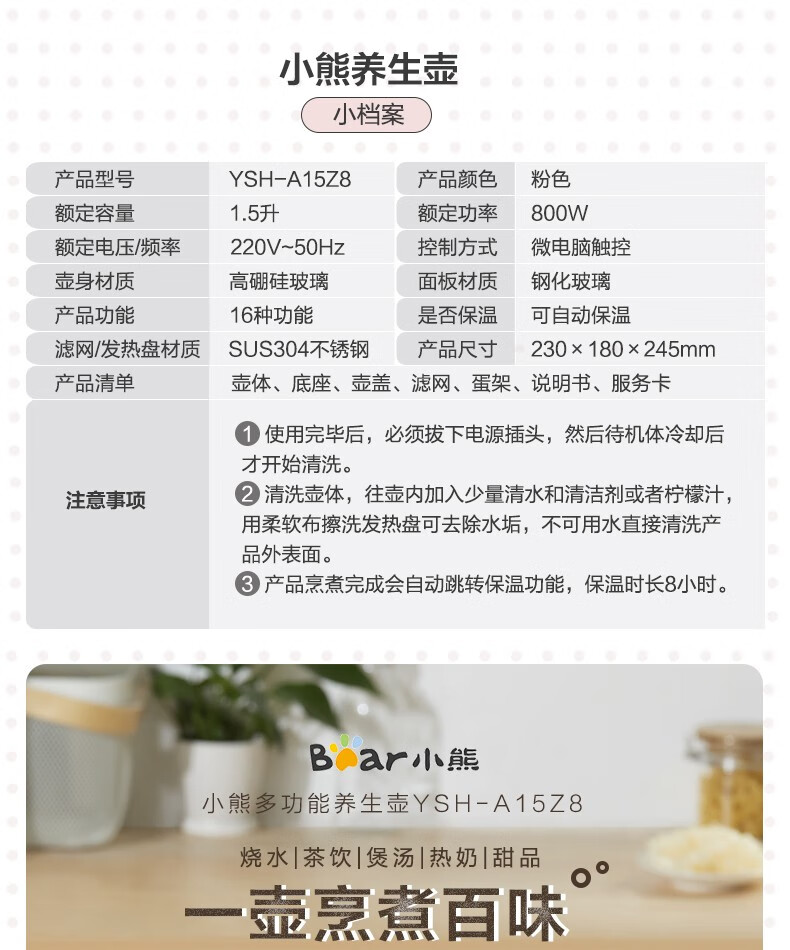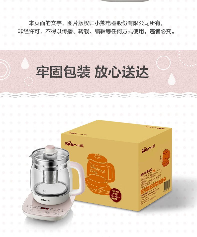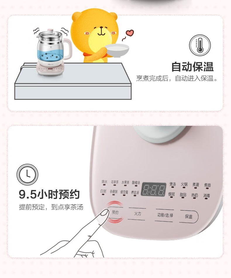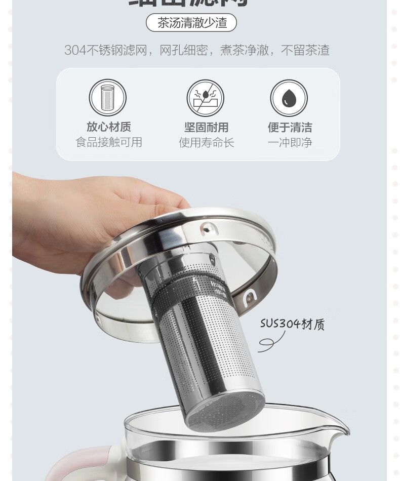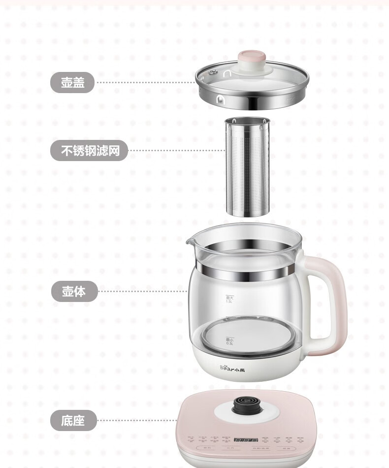 小熊(Bear)养生壶 煮茶器 煮茶壶电水壶烧水壶1.5L触屏玻璃花茶壶