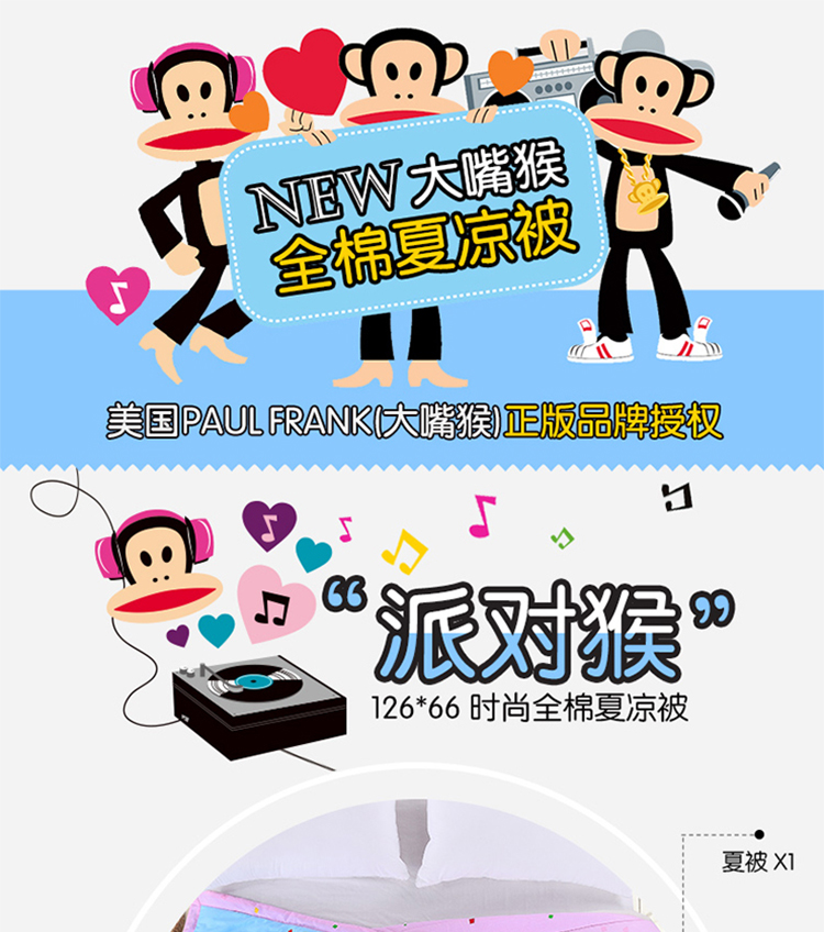 大嘴猴 夏凉被空调被纯棉儿童被子薄