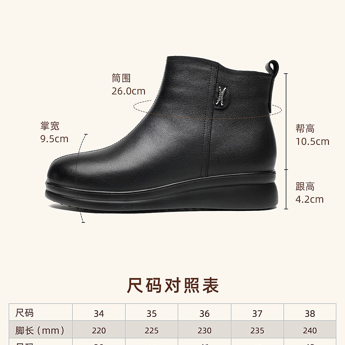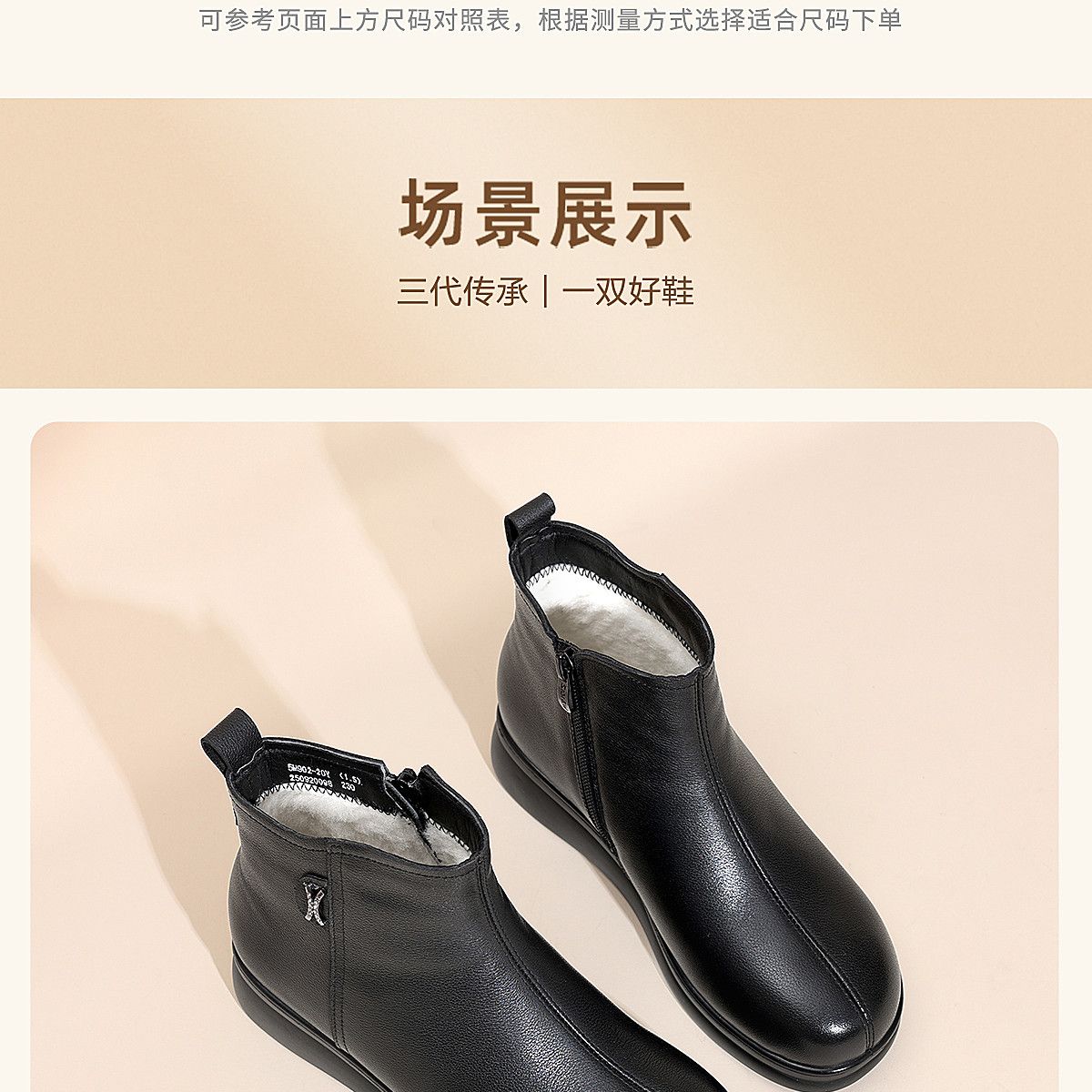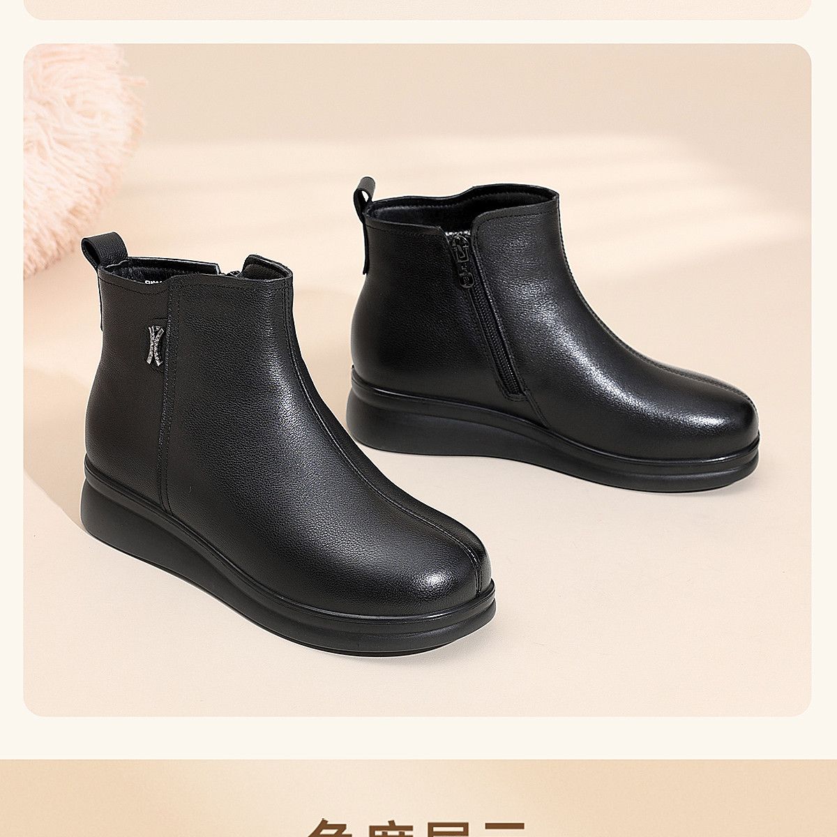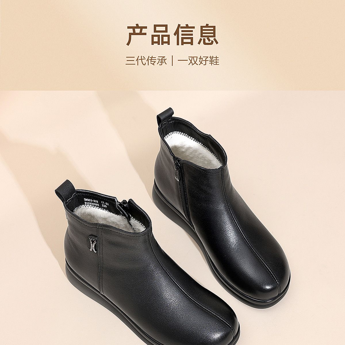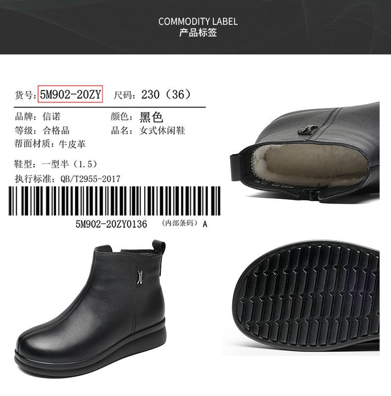 信诺羊毛妈妈棉鞋加绒保暖皮鞋女2025冬季新款中老年厚底真皮短靴5M902-20ZY