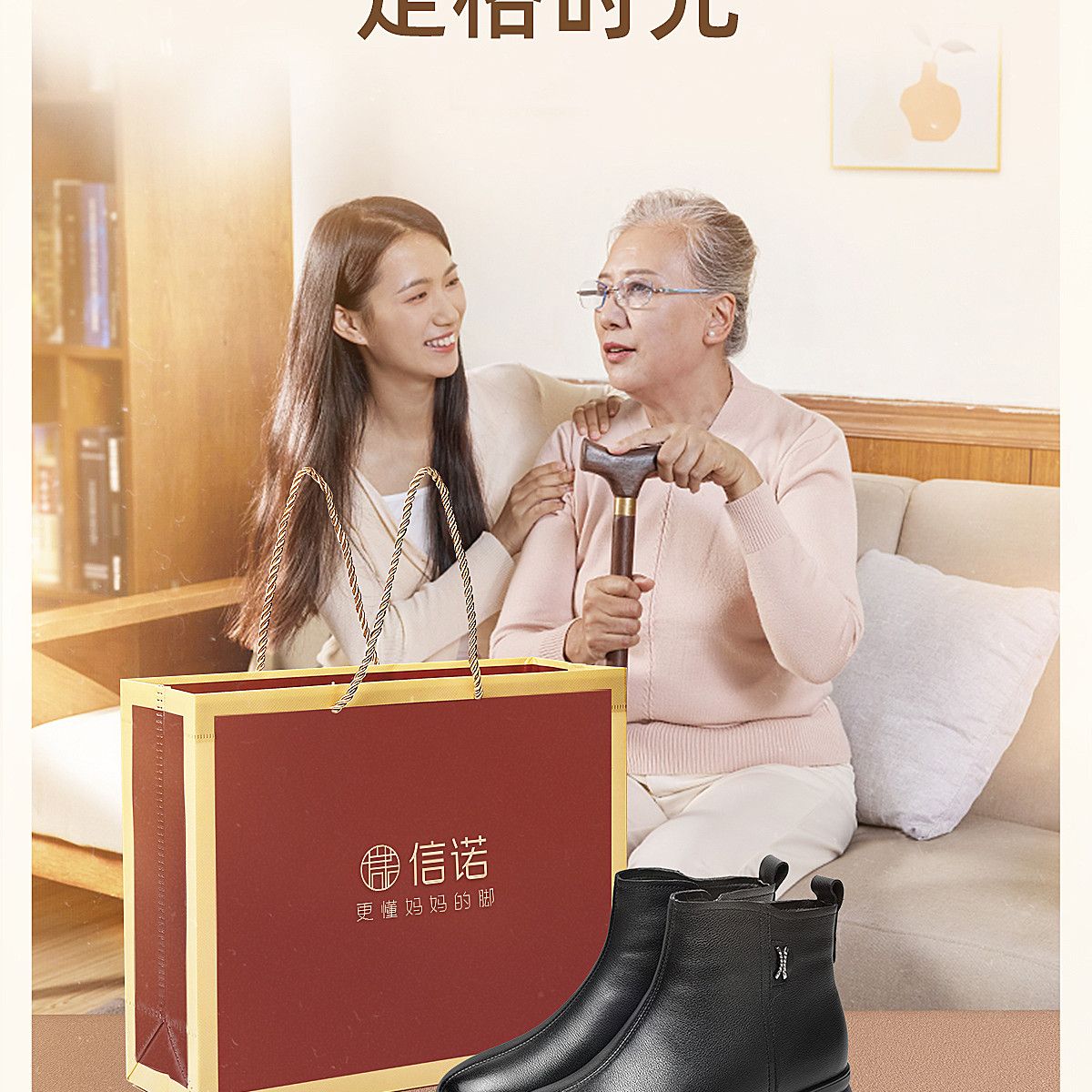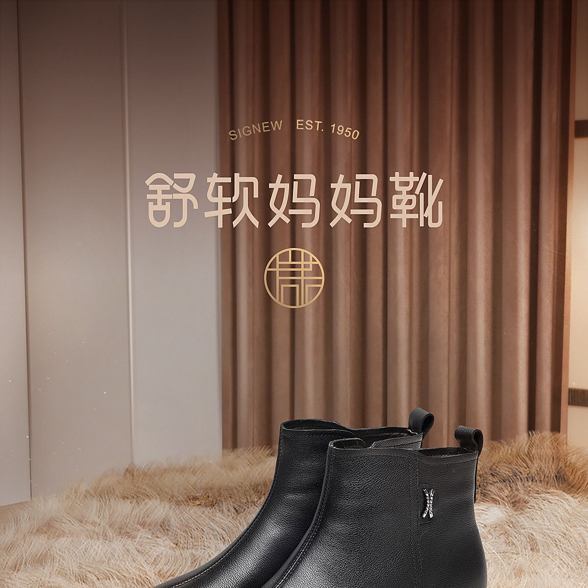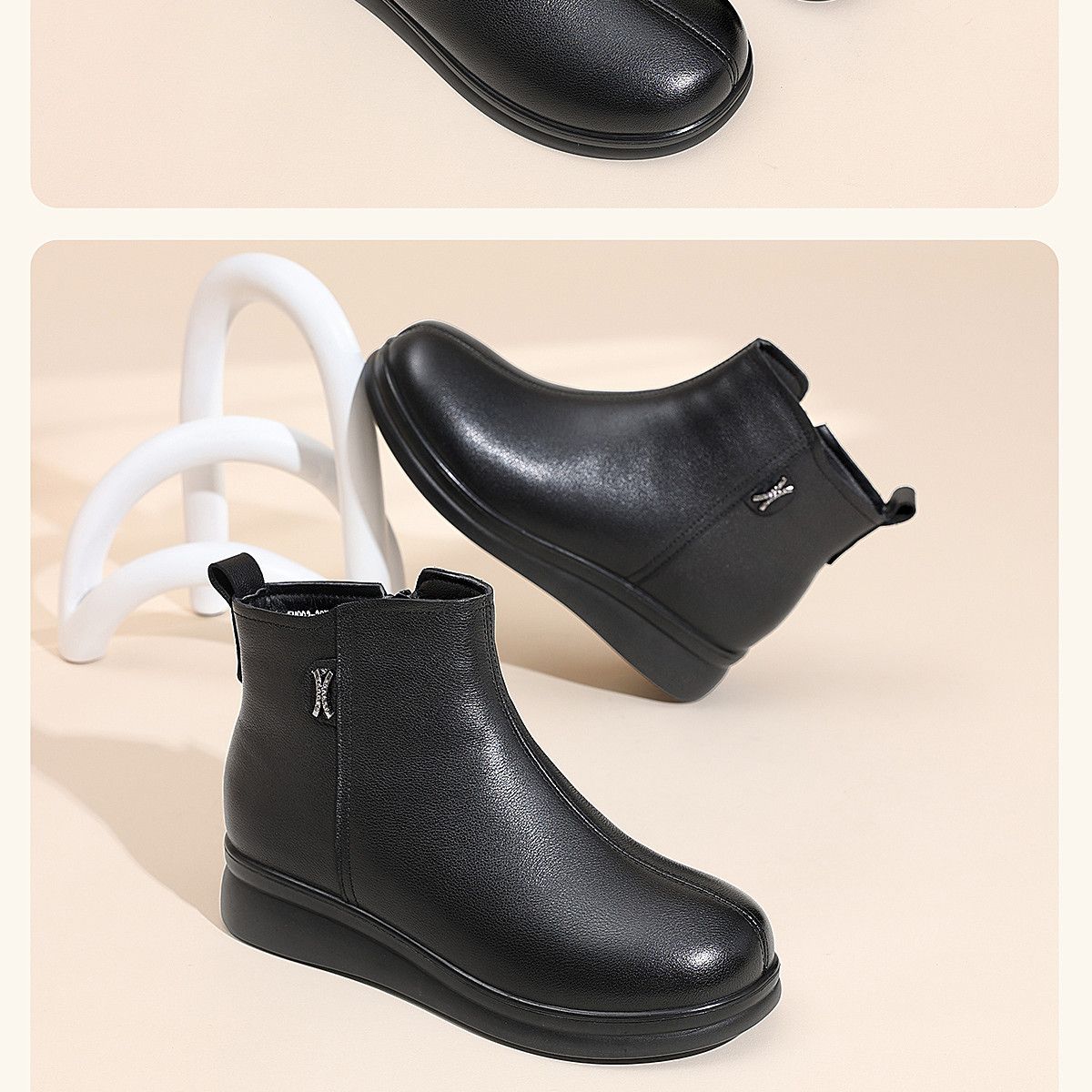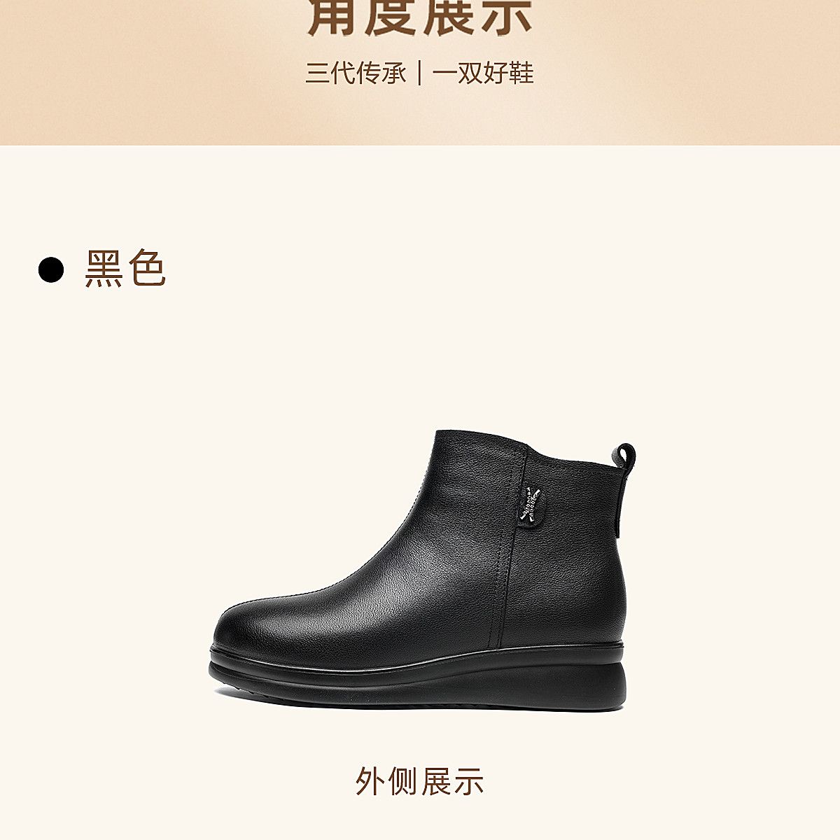信诺羊毛妈妈棉鞋加绒保暖皮鞋女2025冬季新款中老年厚底真皮短靴5M902-20ZY
