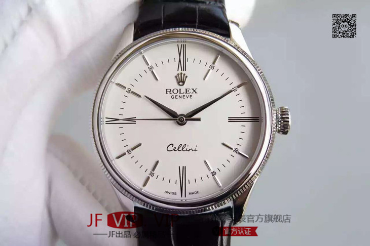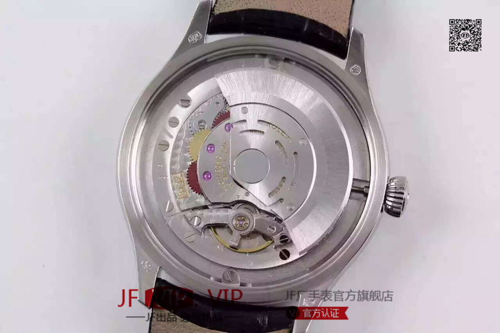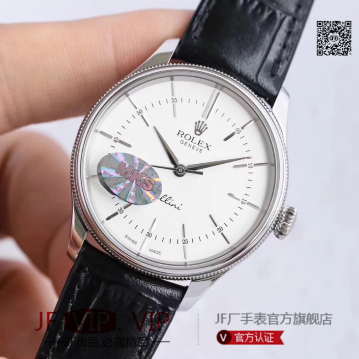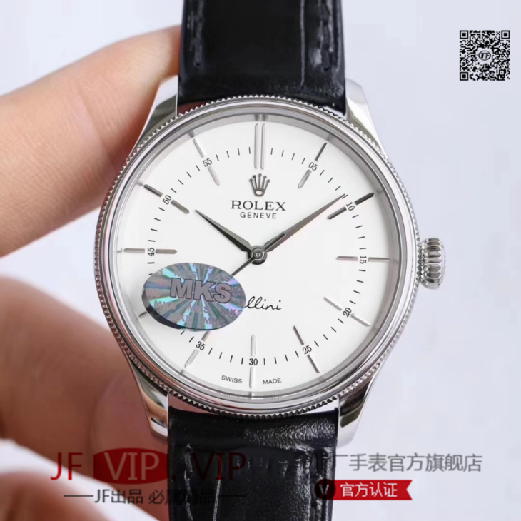 MKS劳力士切利尼系列50509。39毫米直径,包白金,蓝宝石镜面,头层牛皮,男士,不透底,一比一3132专用自动机械机芯。乱真。
