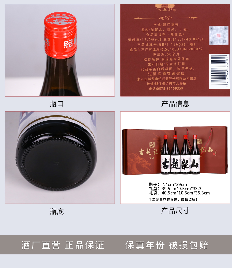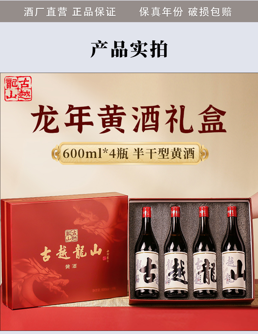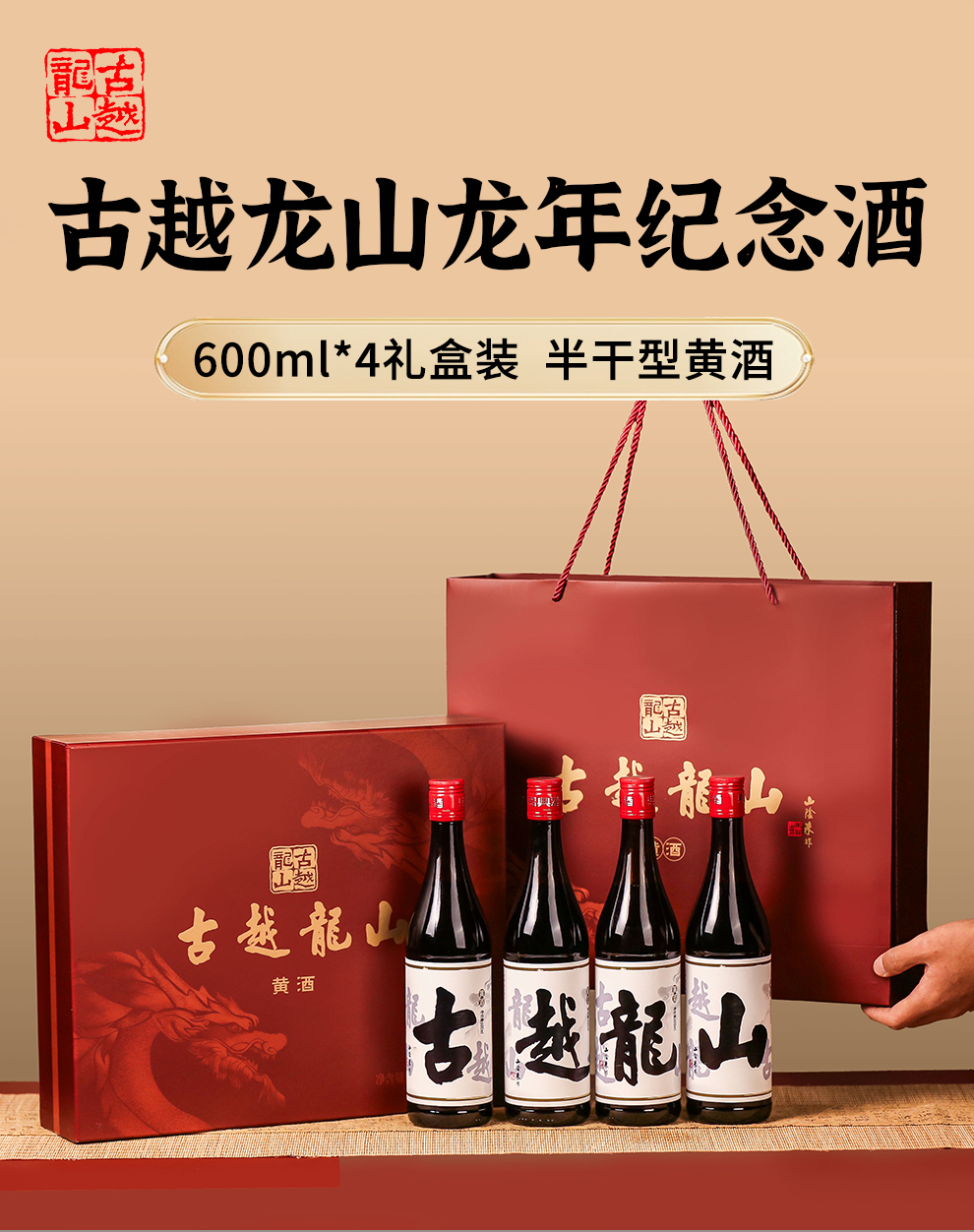 古越龙山纪念酒 绍兴特产 国标一级 半干型黄酒 礼盒包装