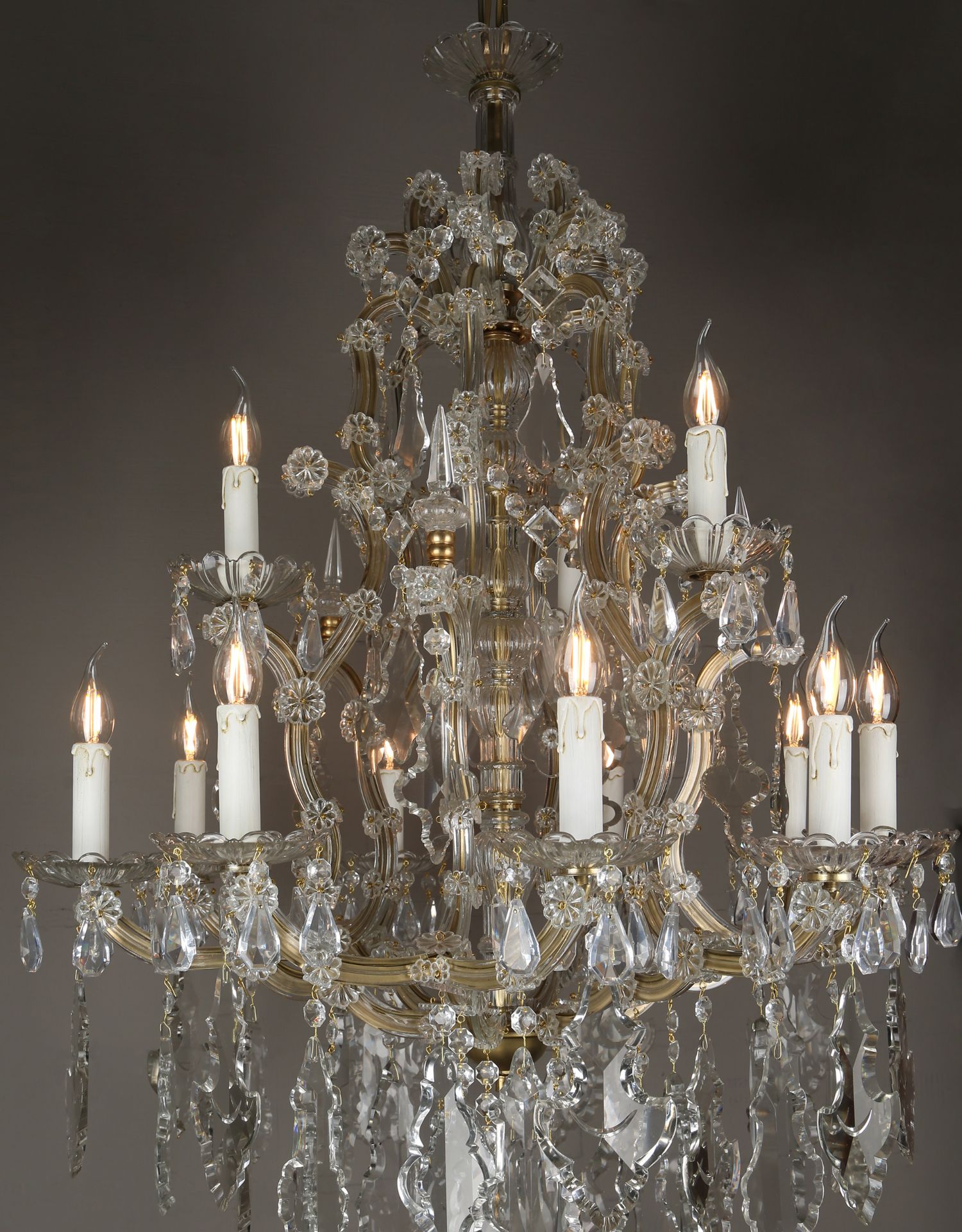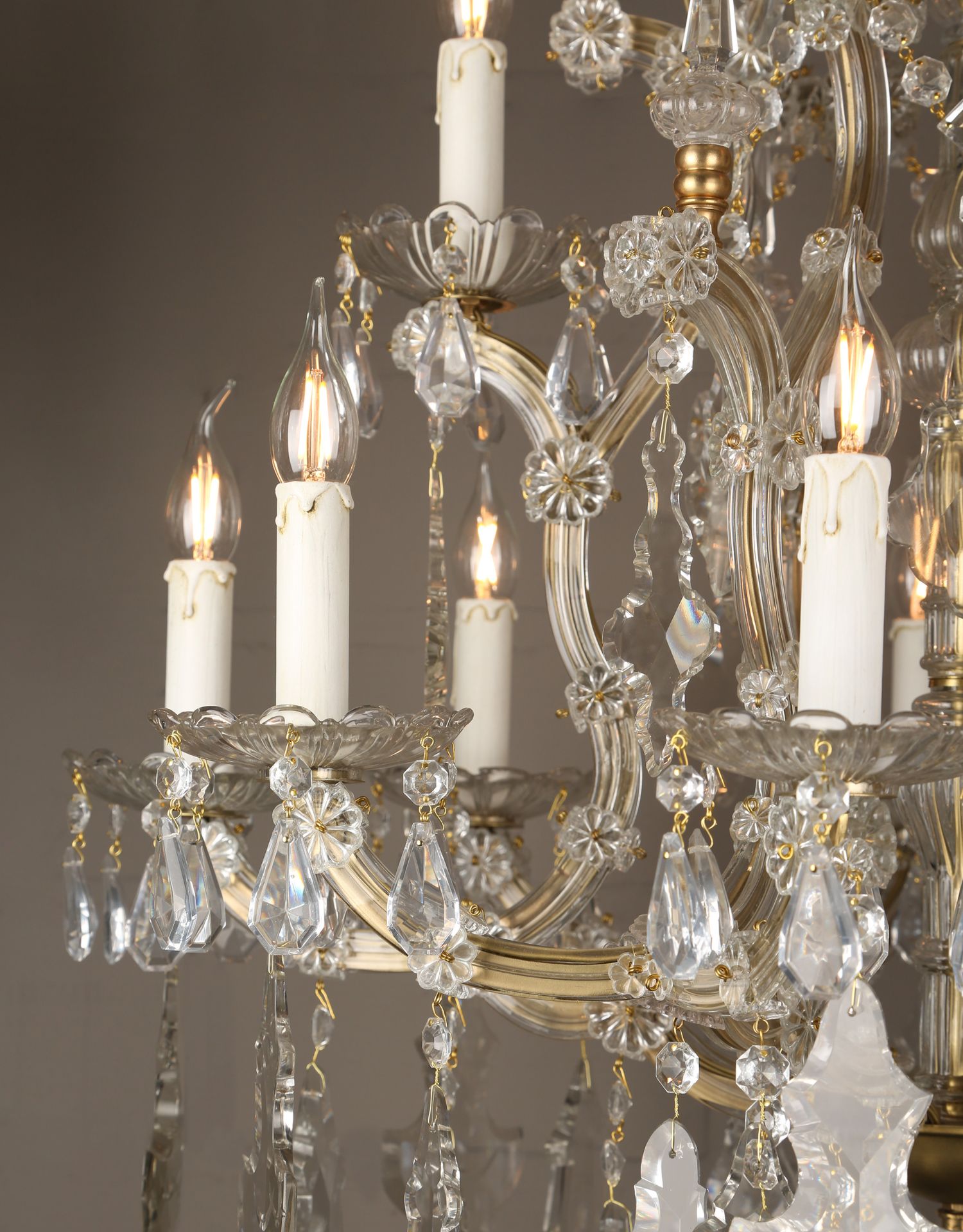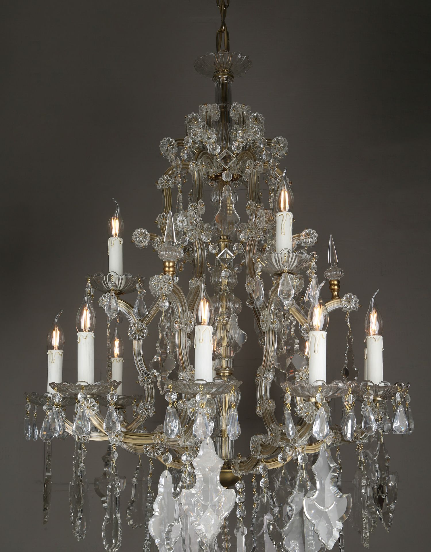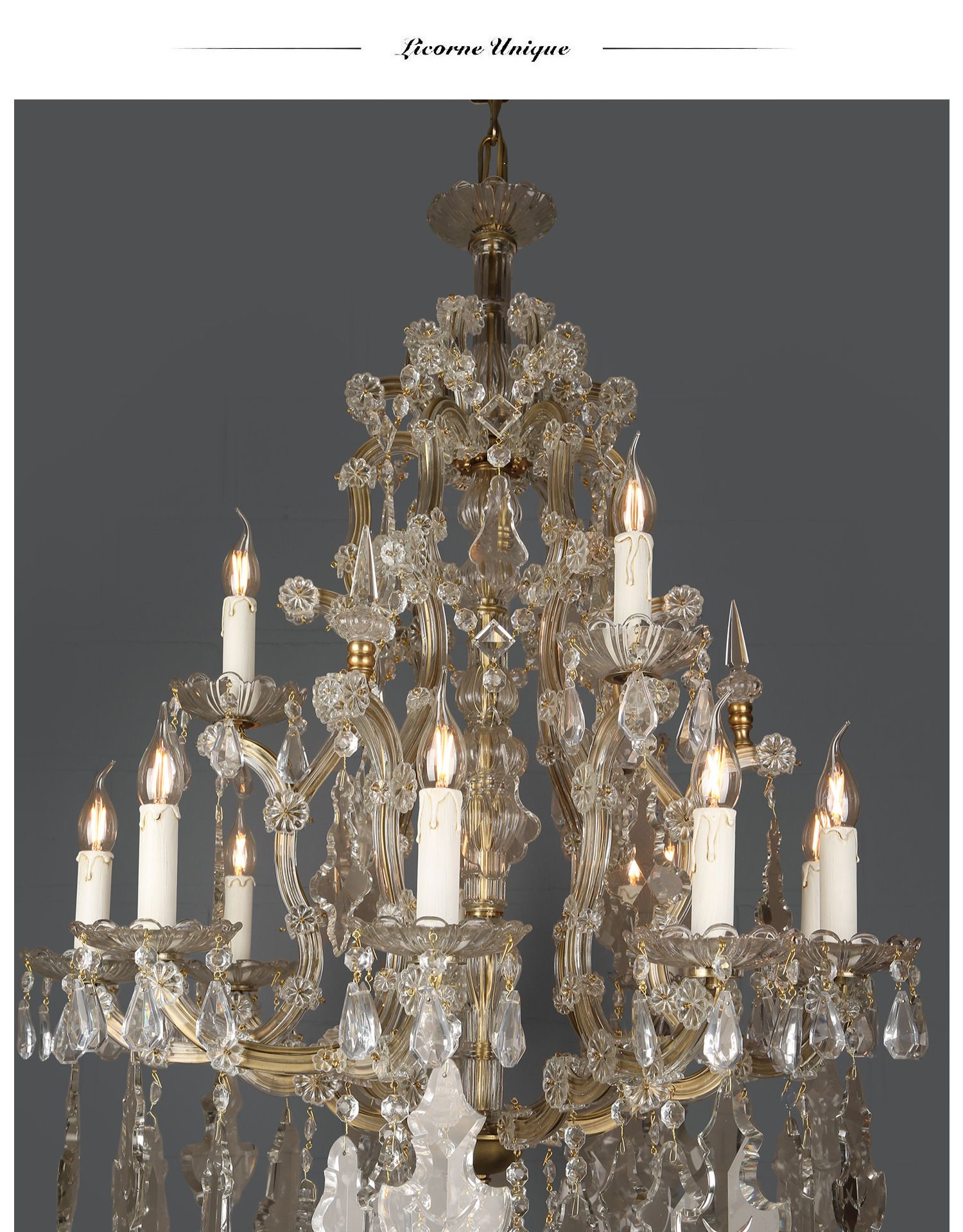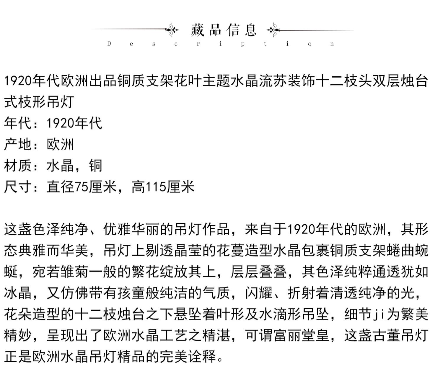 独角鹿西洋古董铜质支架花叶水晶流苏十二枝头双层烛台式枝形吊灯