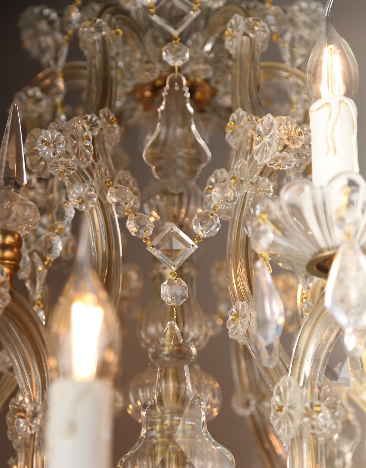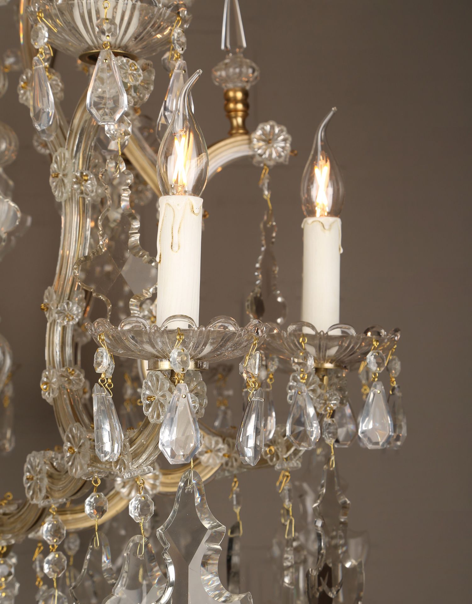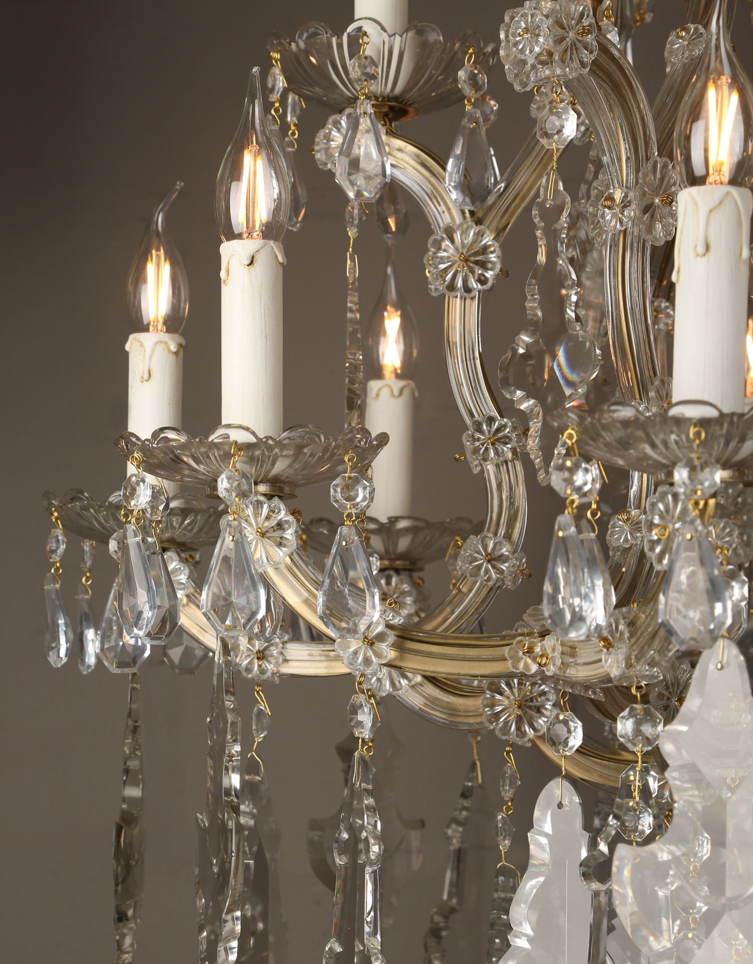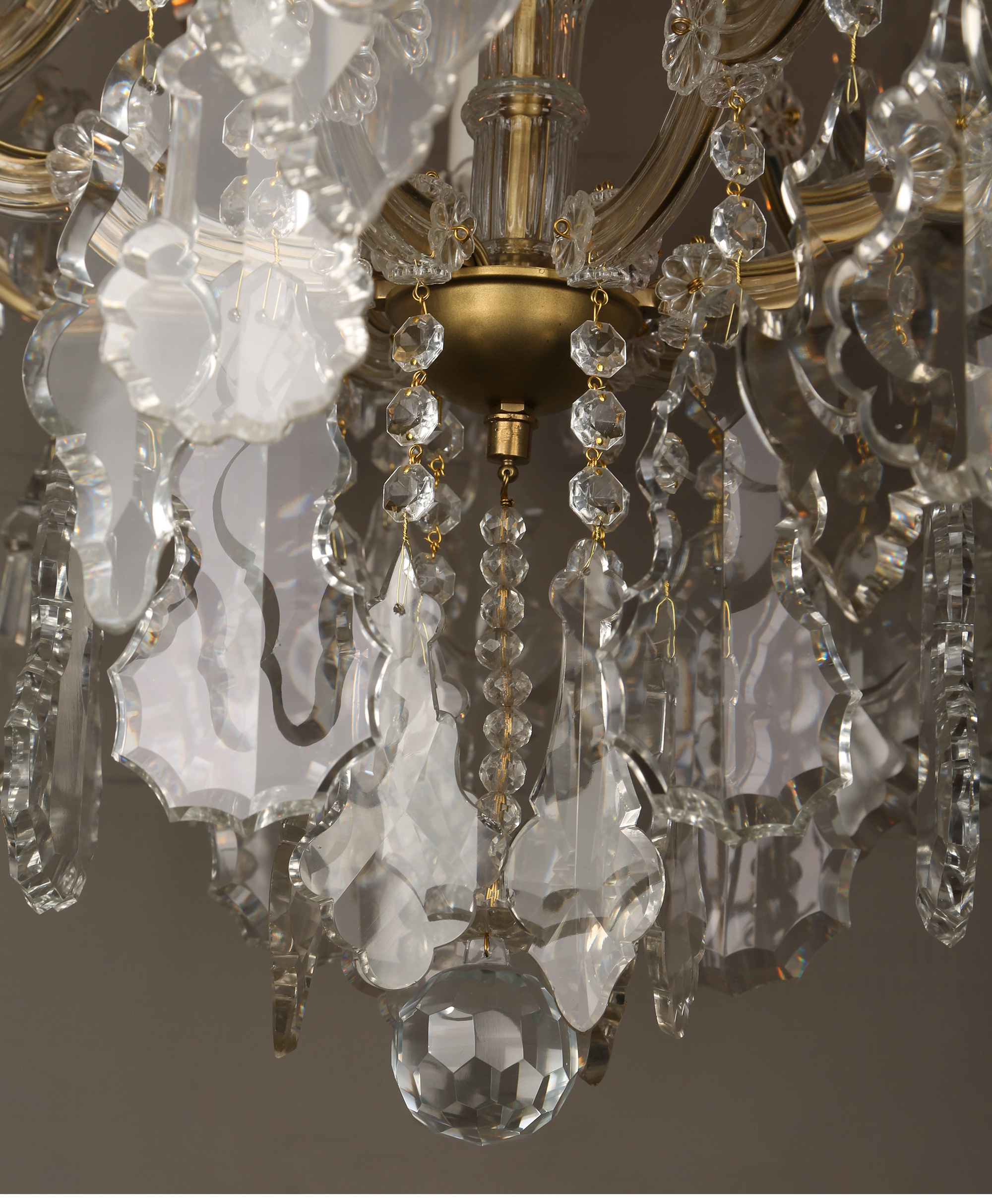 独角鹿西洋古董铜质支架花叶水晶流苏十二枝头双层烛台式枝形吊灯