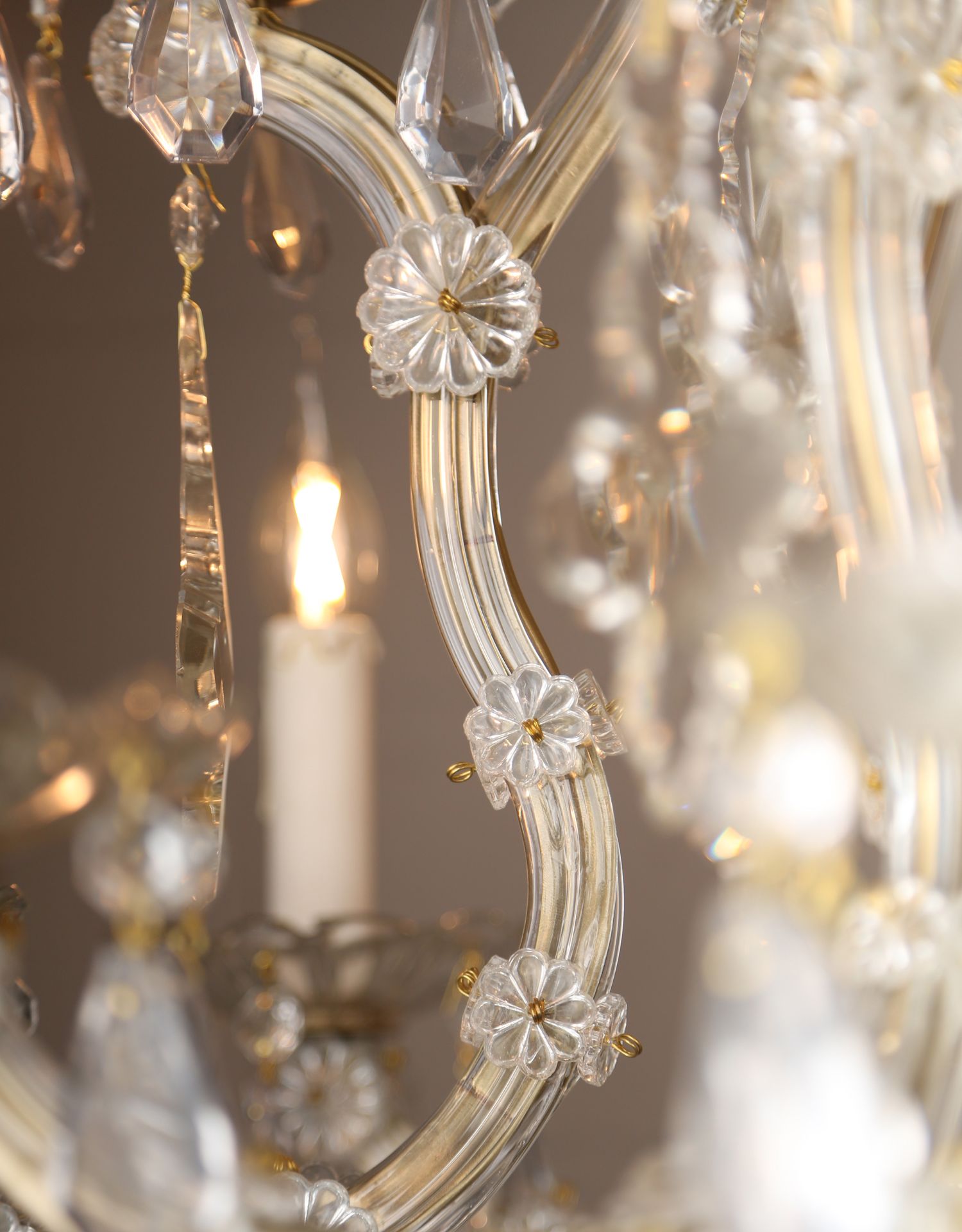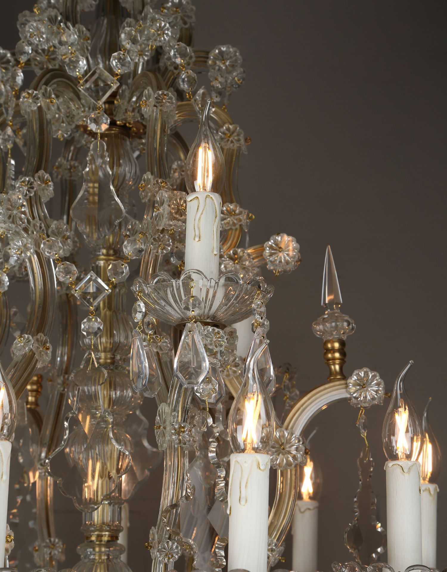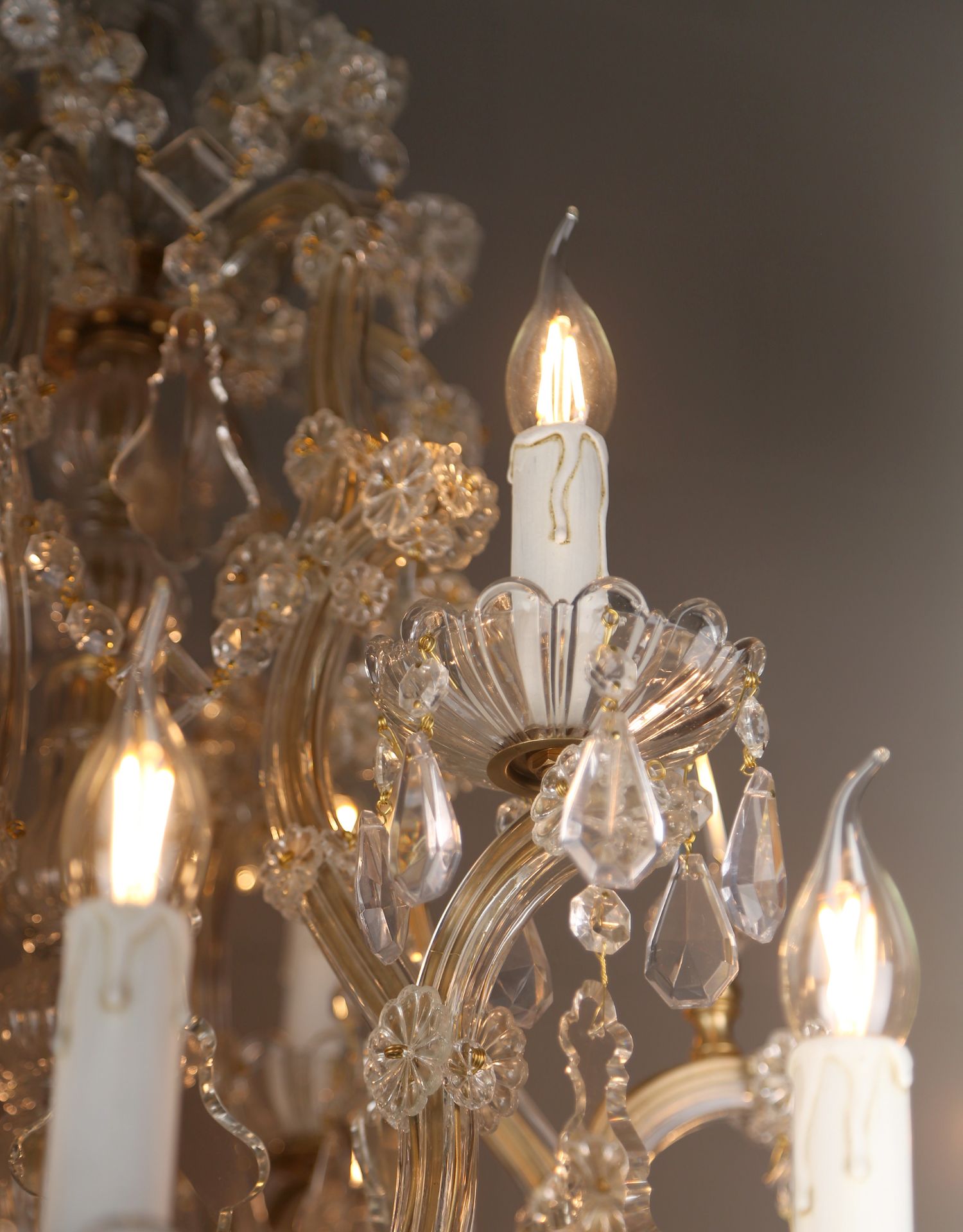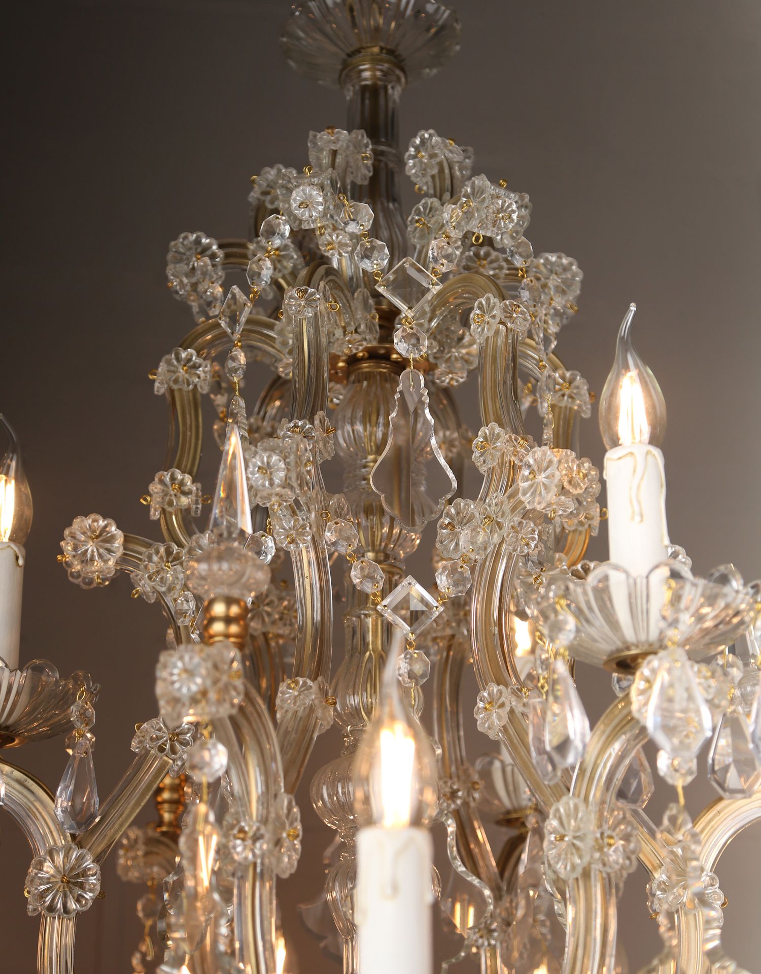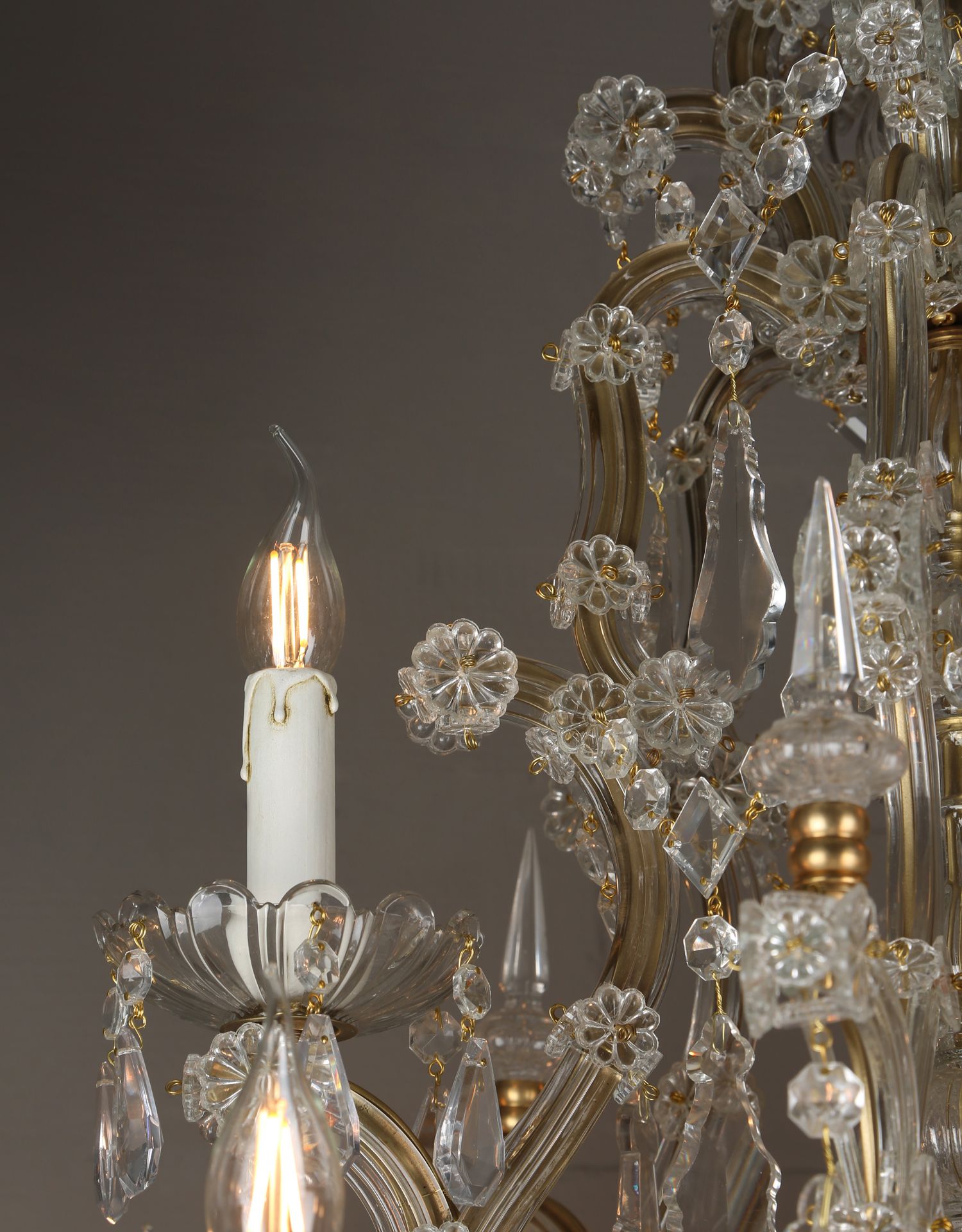独角鹿西洋古董铜质支架花叶水晶流苏十二枝头双层烛台式枝形吊灯
