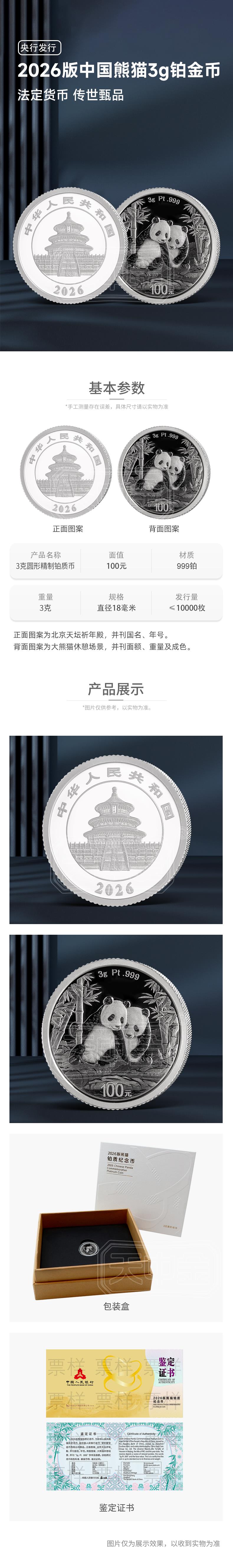 【发行价】2026年熊猫铂金币 3克 30克 100克铂金999 中国人民银行 原盒原证