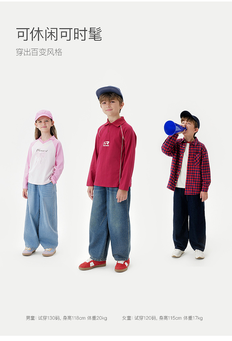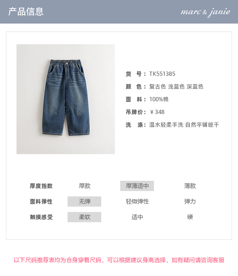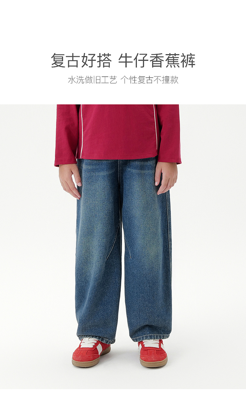马克珍妮男女童复古百搭牛仔香蕉裤儿童裤子2025年秋装新款551385