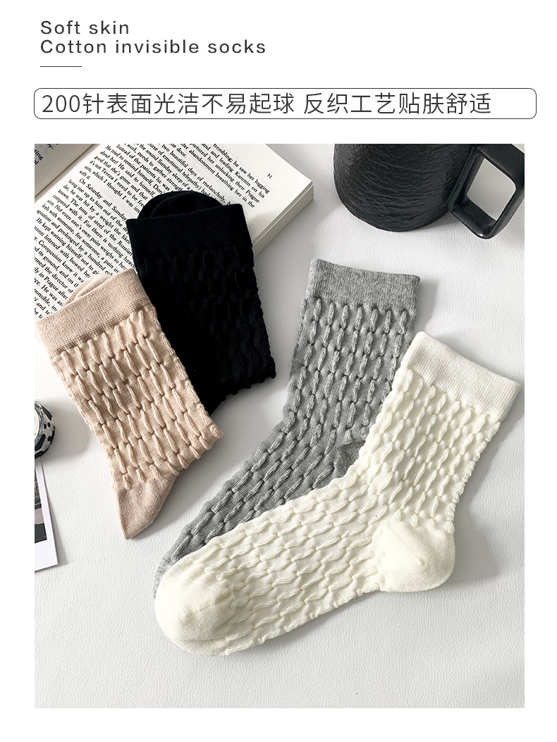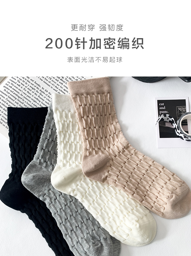 足装秀24新品夏季女棉质亲肤透气学院风黑白字母袜百搭女中邦袜子