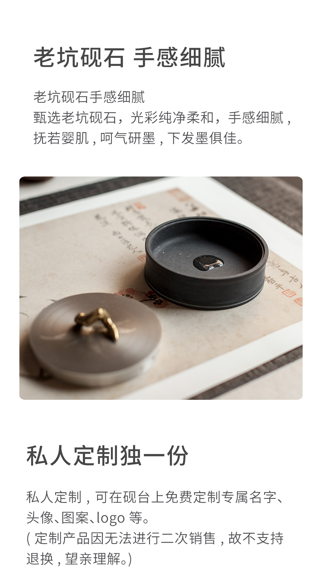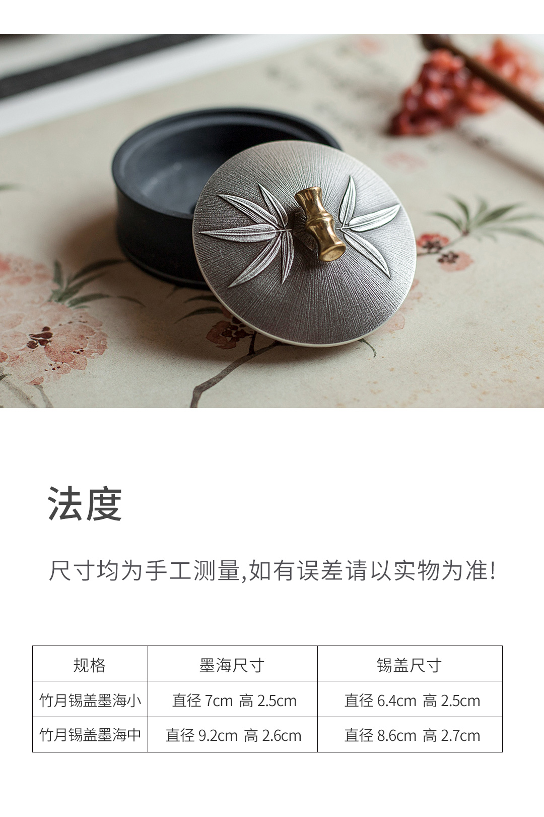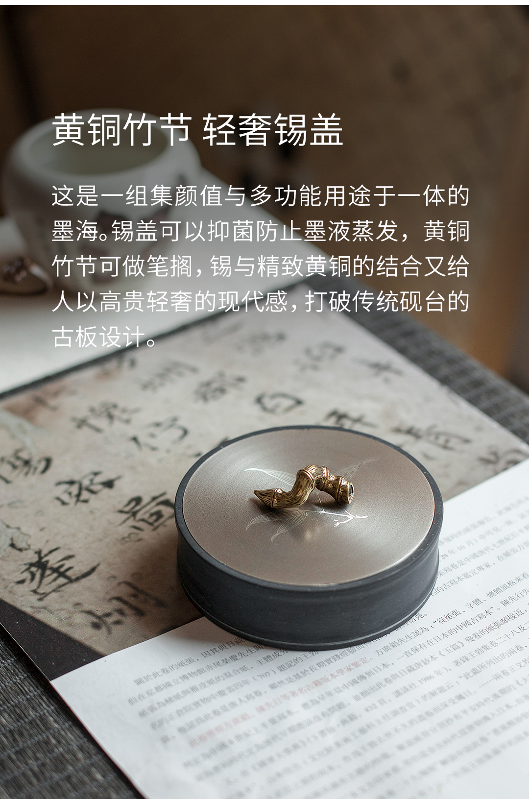 宣砚 竹月锡盖墨海 天然原石(需要刻字请备注)