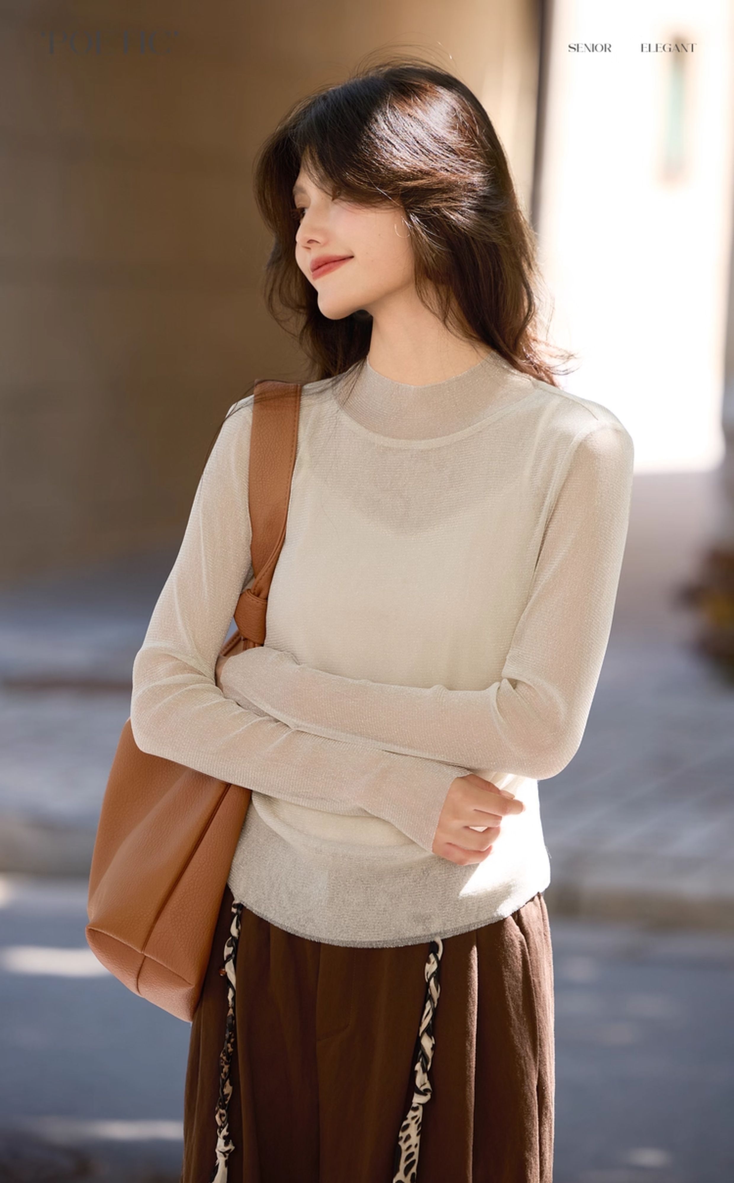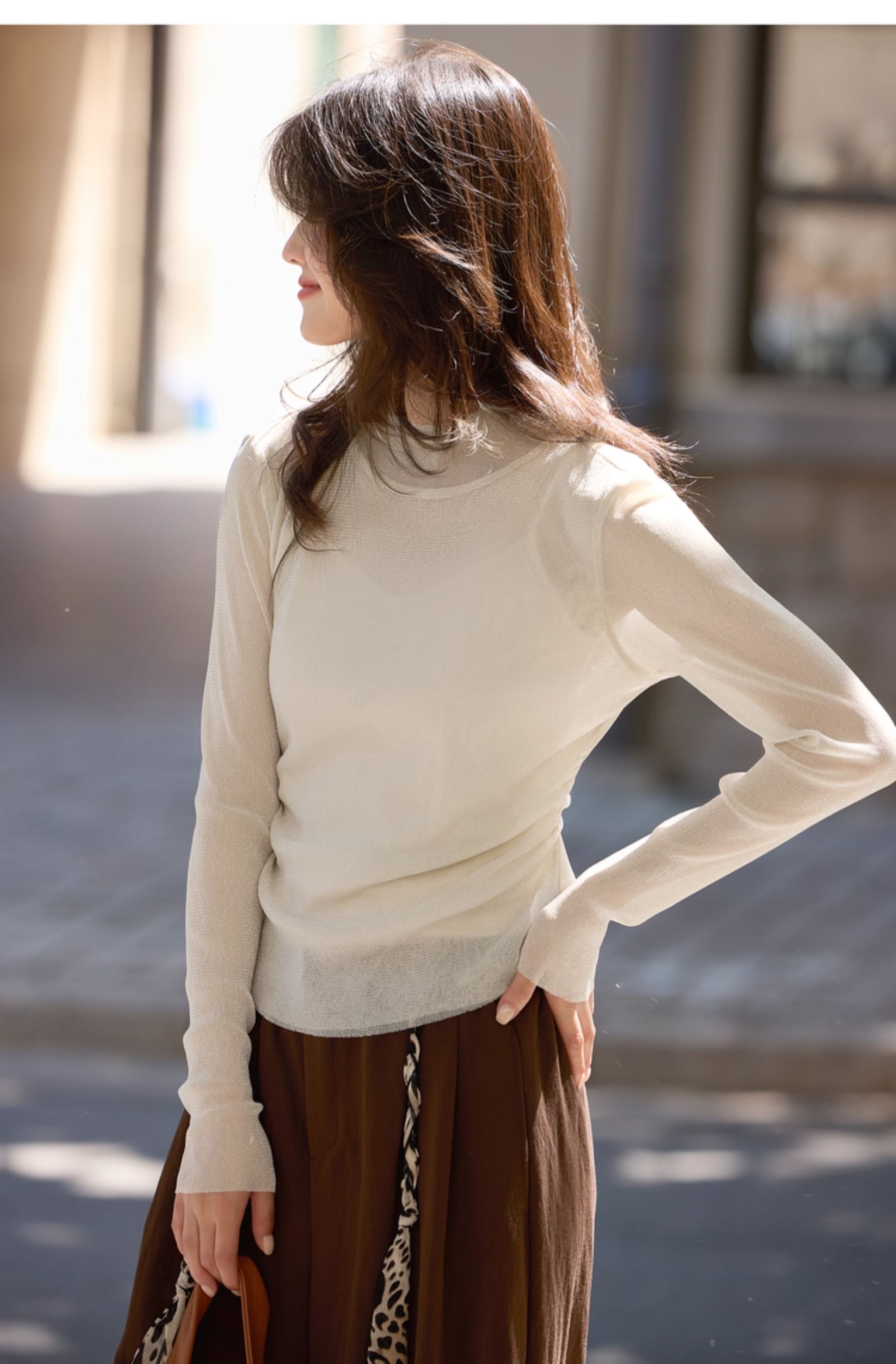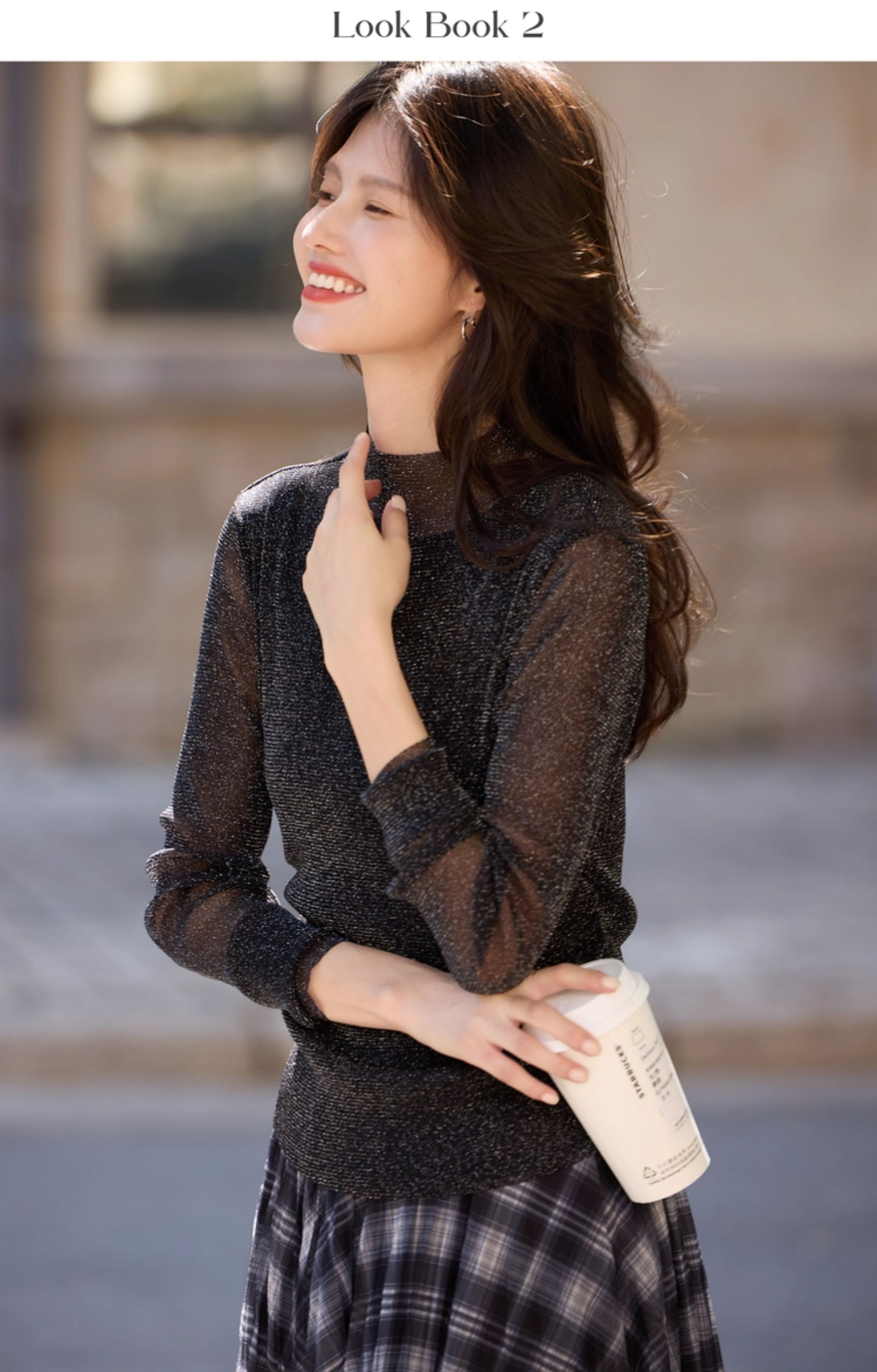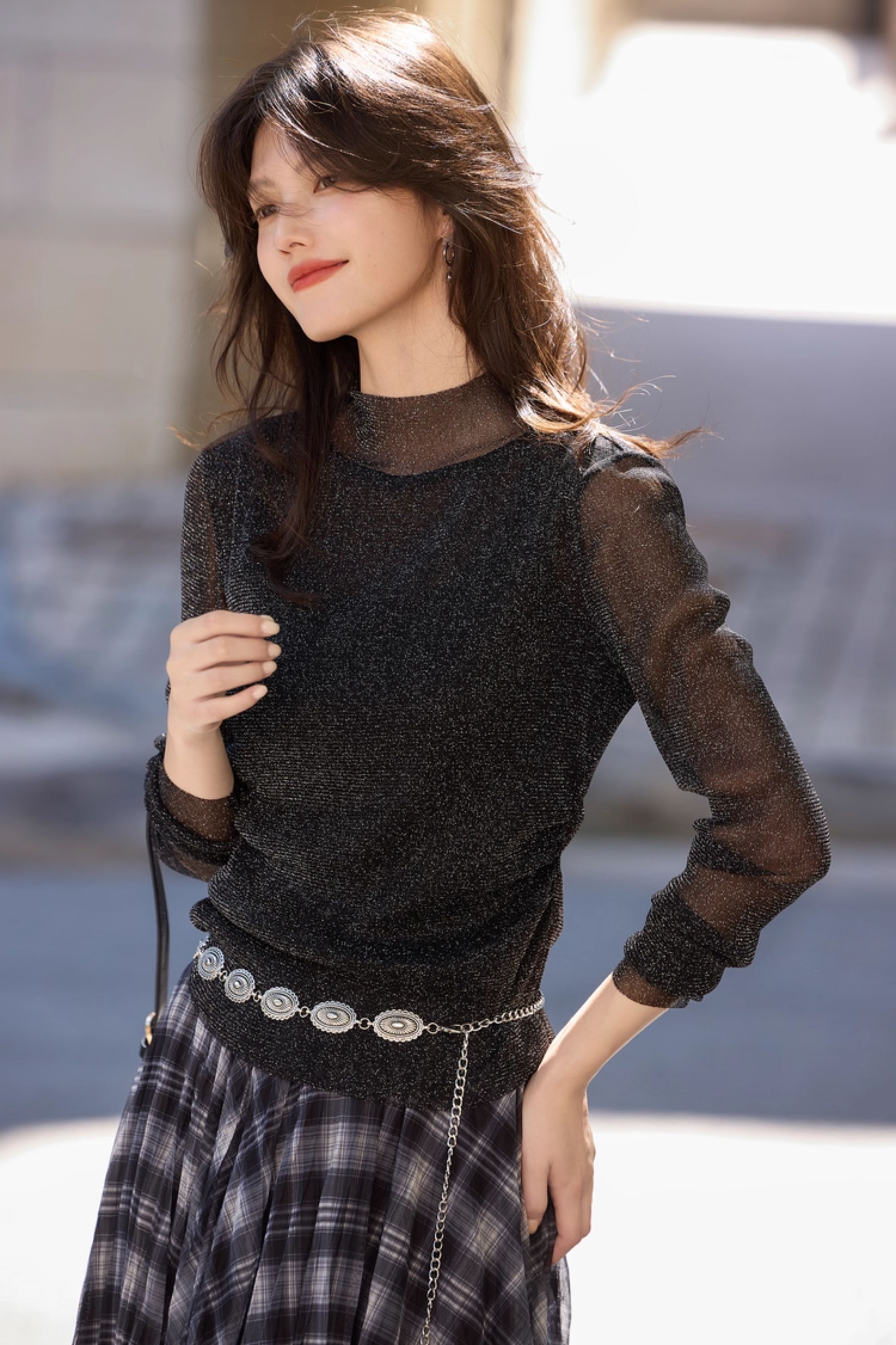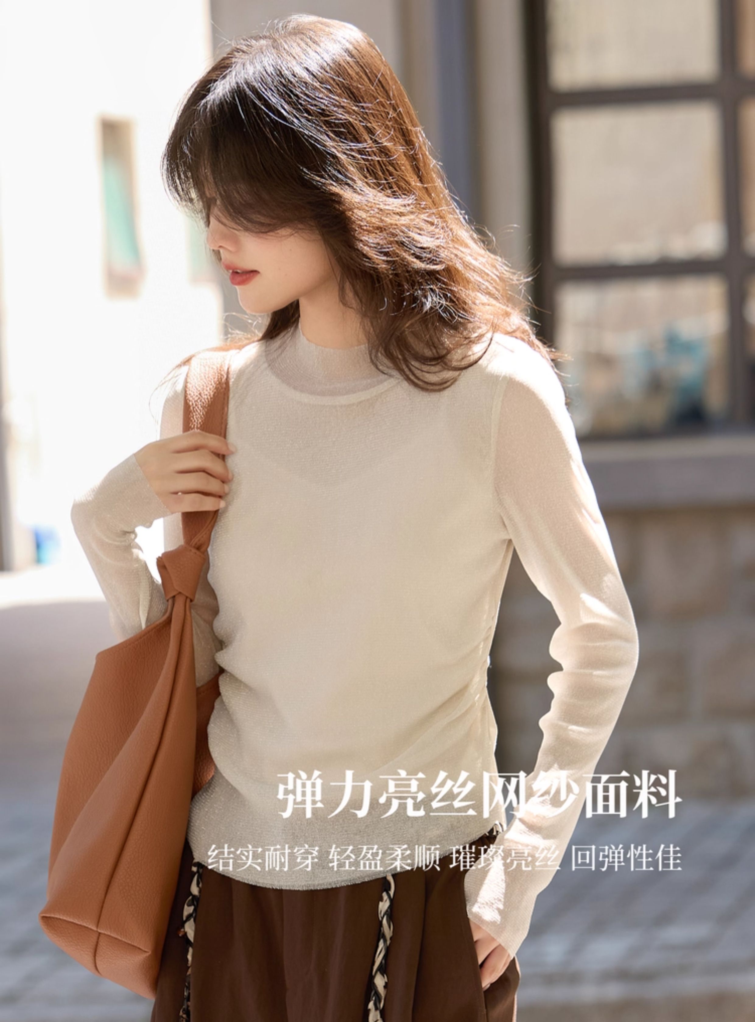 【10/15新品】熙世界「繁星亮丝打底衫」半高领轻薄网纱T恤女秋季内搭长袖上衣