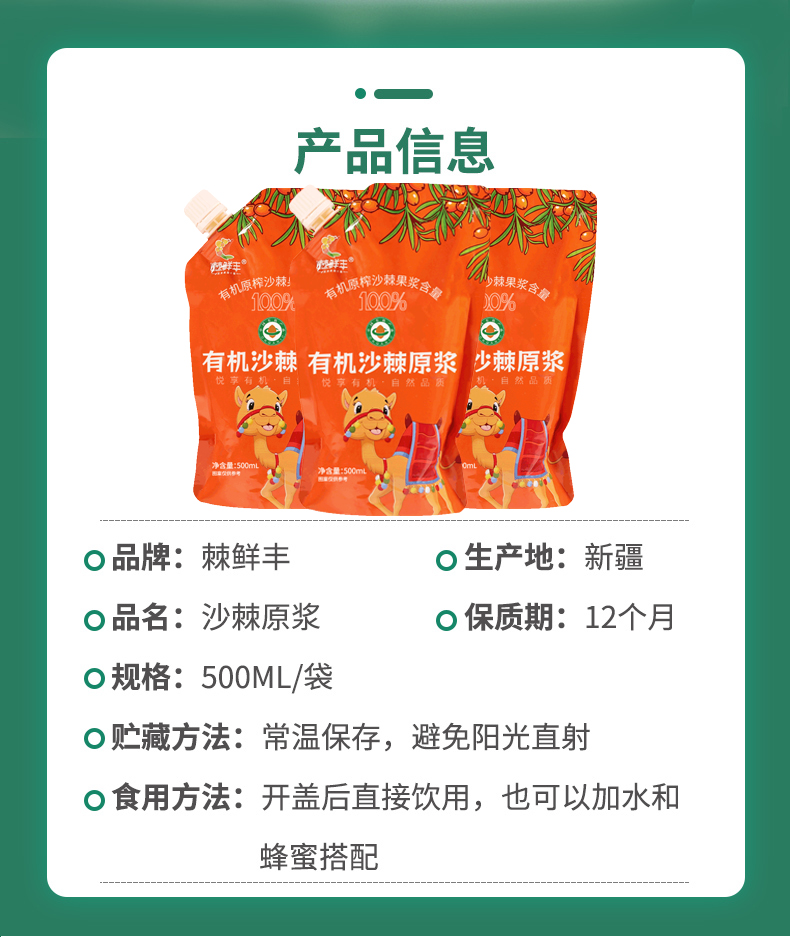 棘鲜丰有机沙棘原浆(吸嘴袋)500ml/袋