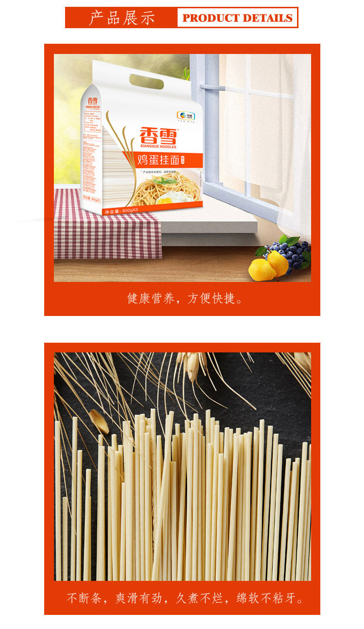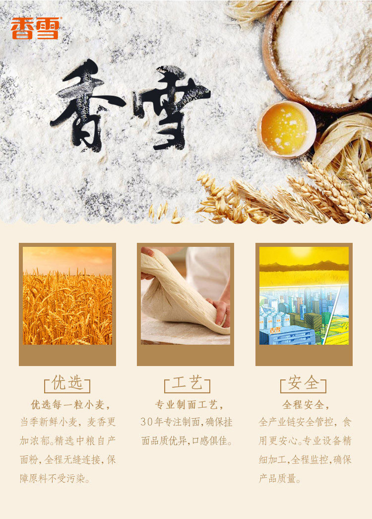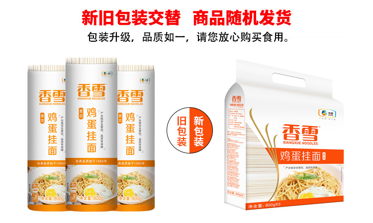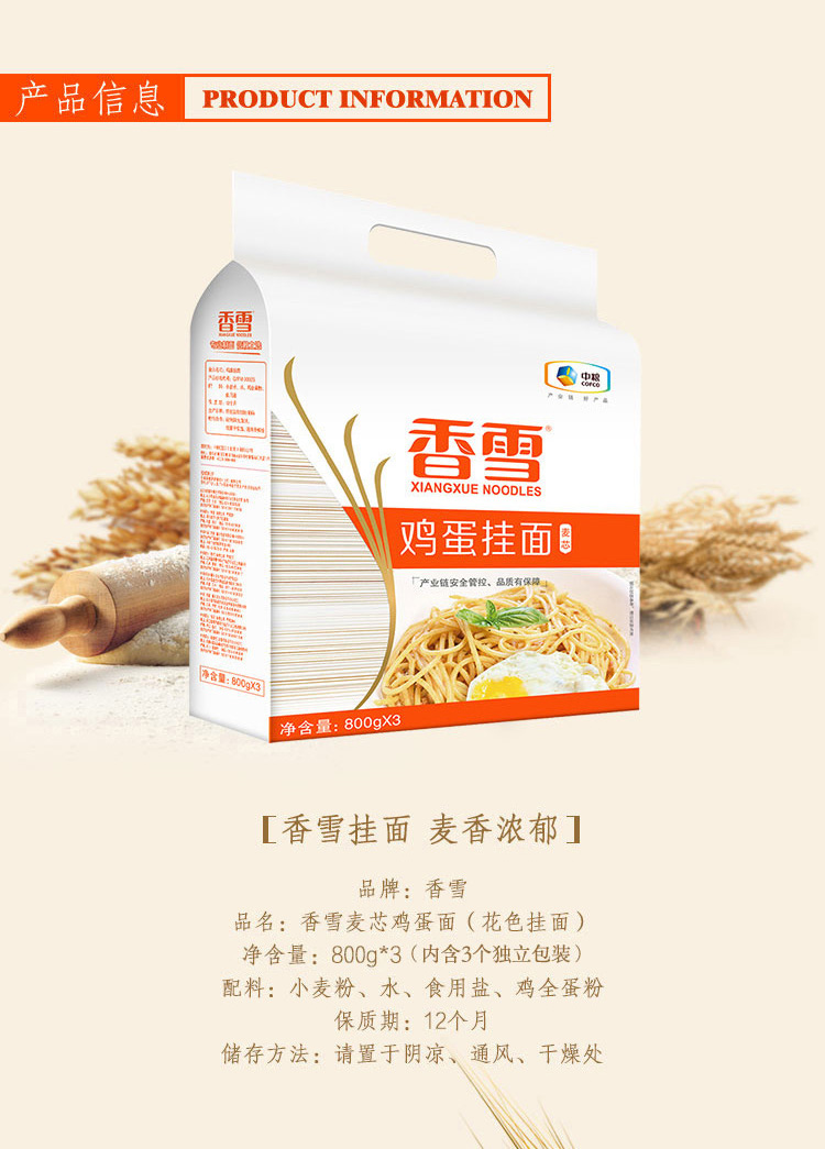 香雪面条 挂面 麦芯鸡蛋面2.4kg 中粮出品 (套装)细面 圆面 适合拌面汤面等800g*3