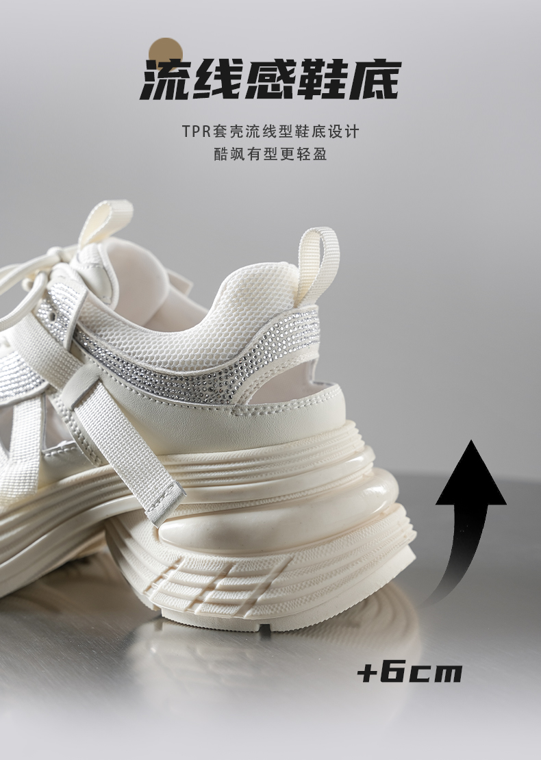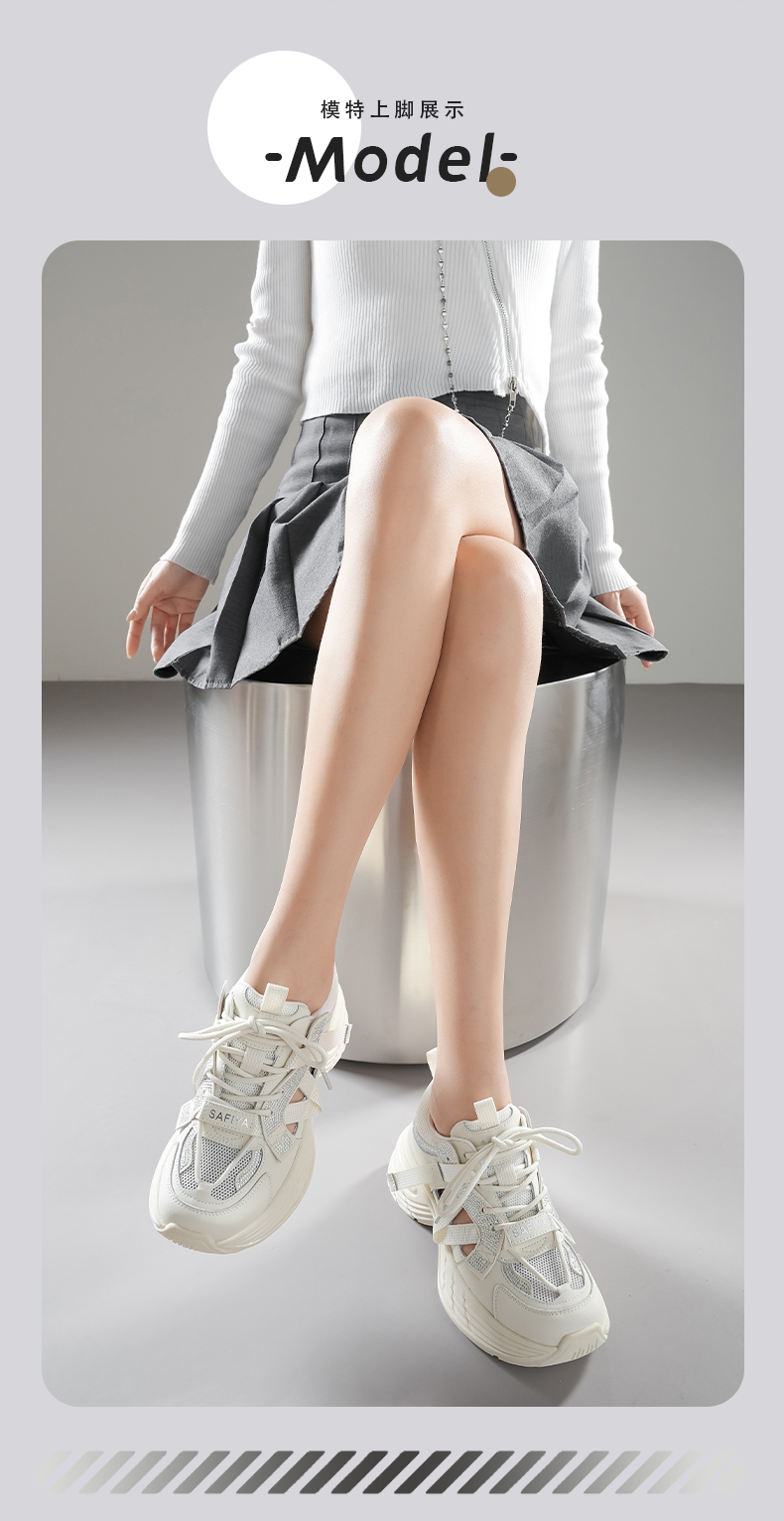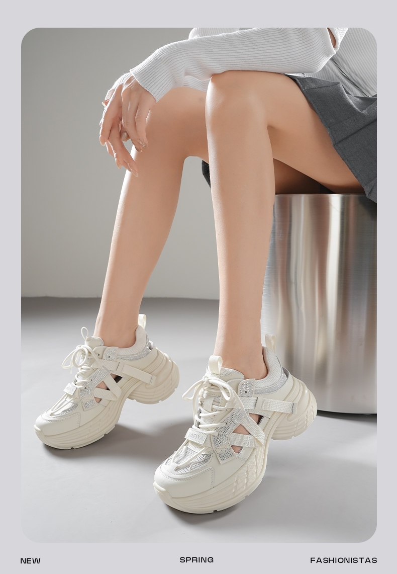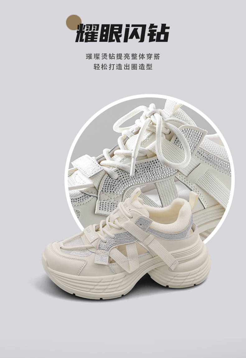 预售10天|Safiya/索菲娅2025潮流厚底网面镂空烫钻增高休闲运动老爹鞋 SFD1112255