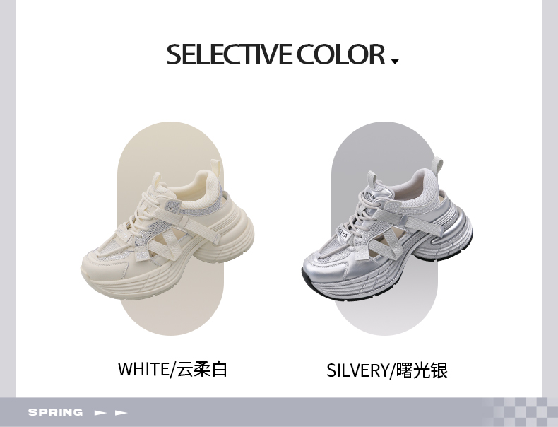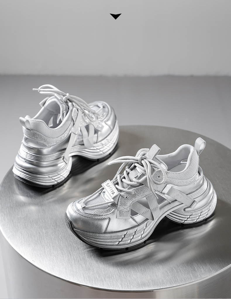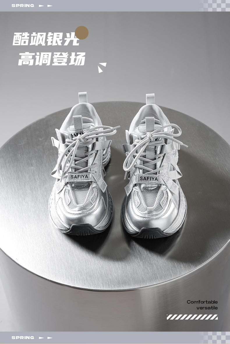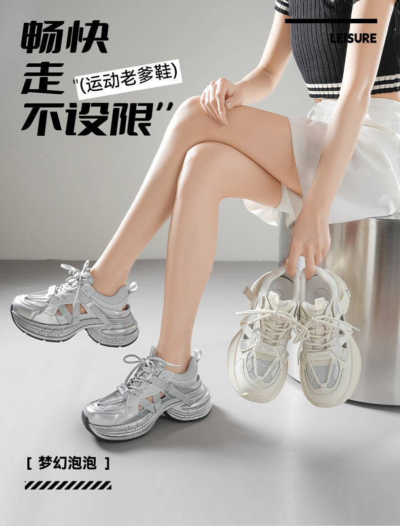 预售10天|Safiya/索菲娅2025潮流厚底网面镂空烫钻增高休闲运动老爹鞋 SFD1112255