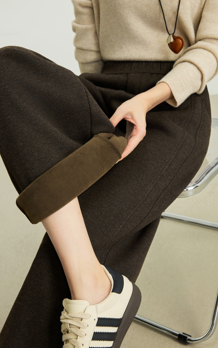 【10/29新品】熙世界【过冬暖绒裤】绵羊毛窄版直筒裤女秋冬休闲加绒加厚阔腿裤