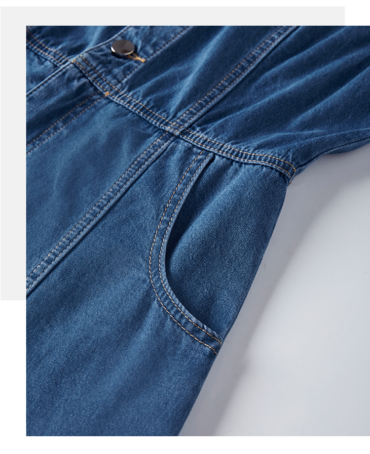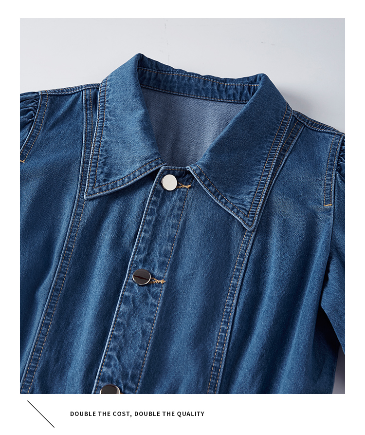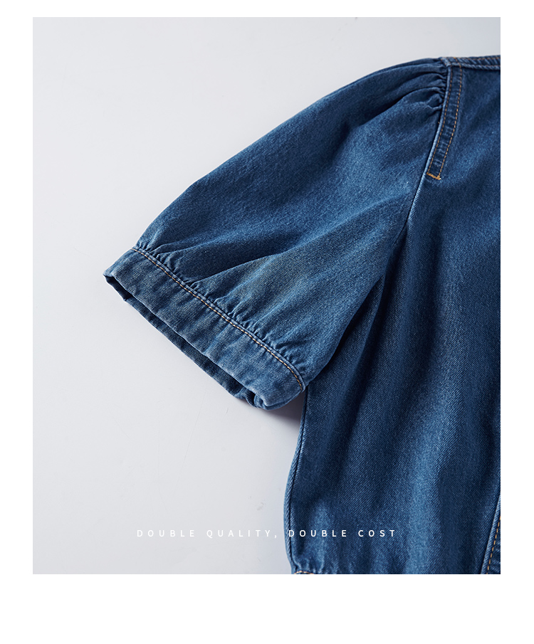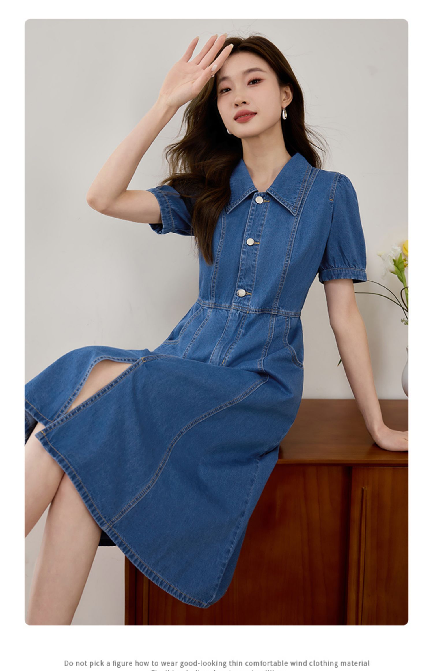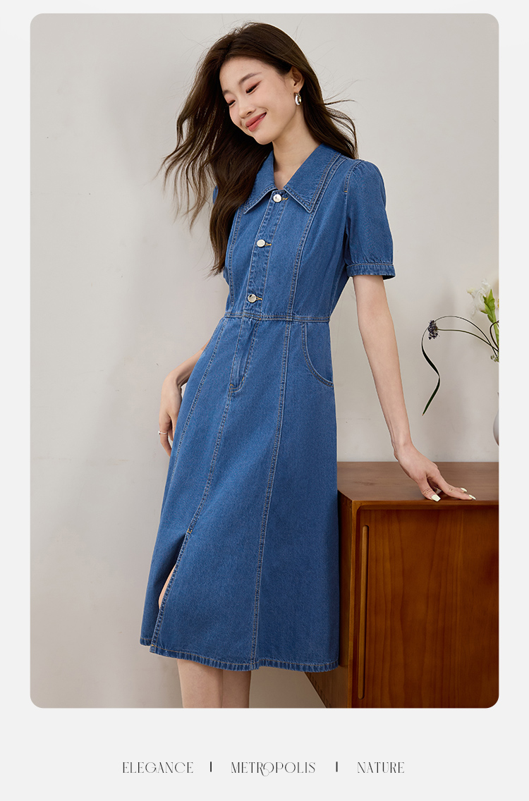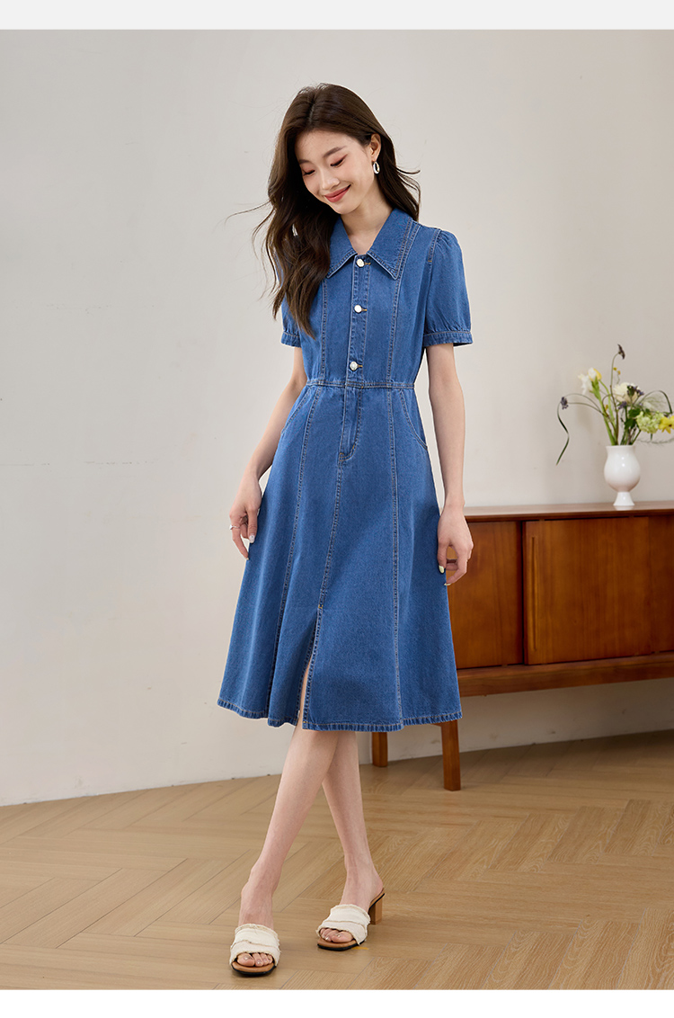 【专属特价】熙世界通勤职场港风牛仔连衣裙夏装新款泡泡袖法式鱼尾a字裙子