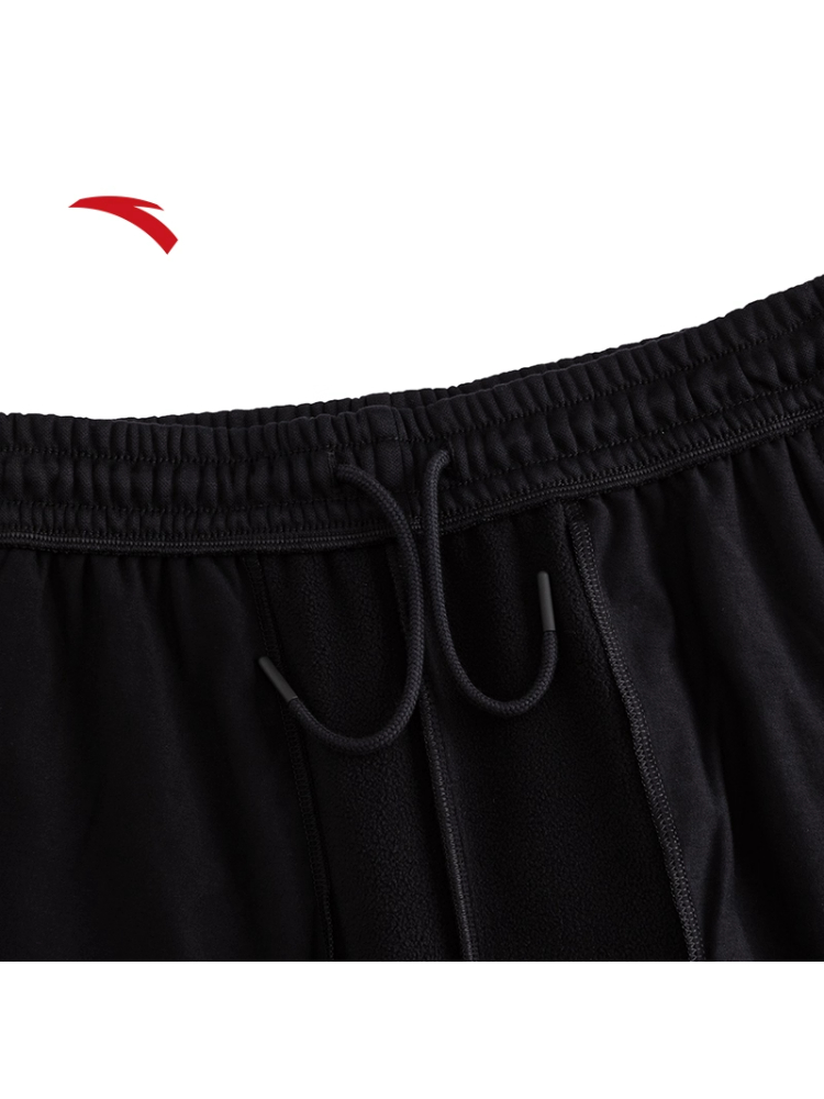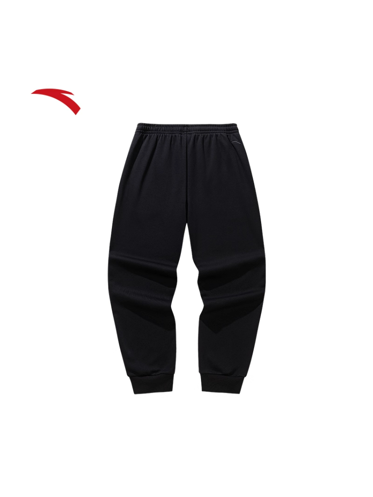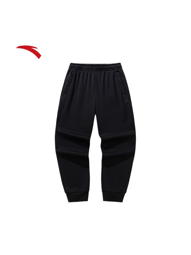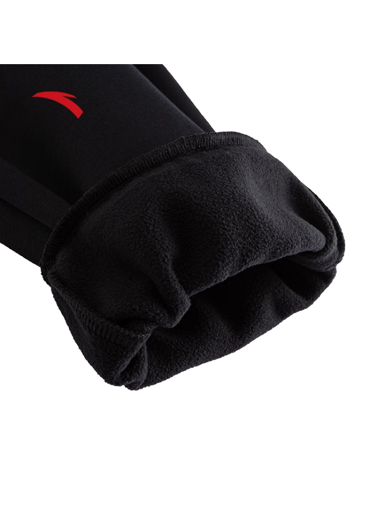 安踏KT加绒运动卫裤男黑色束脚针织长裤子152541301P-1