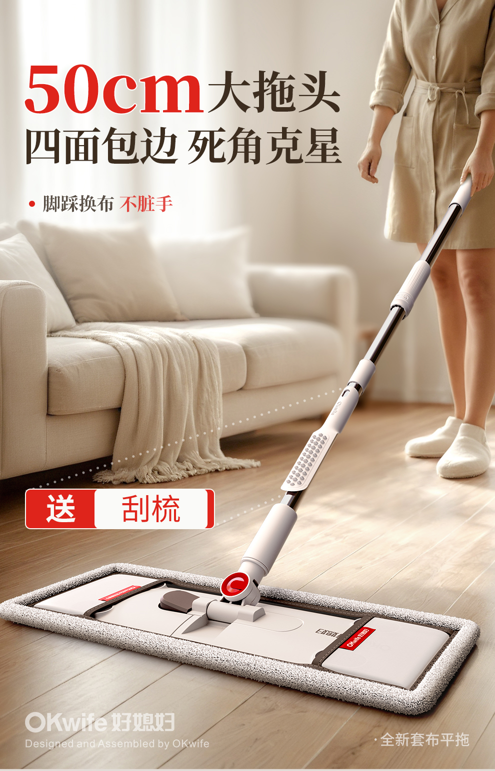 好媳妇平板拖把官方正品家用木地板懒人墩布一拖净干湿两用布套式