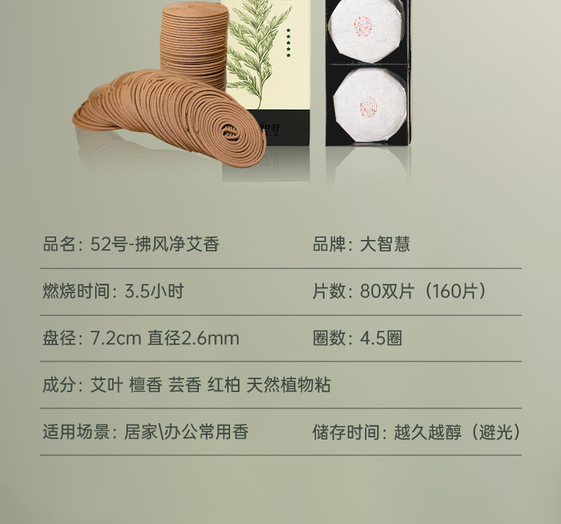 【送香炉】艾草盘香3.5小时/160片茅厕去味冬季室内去味净味