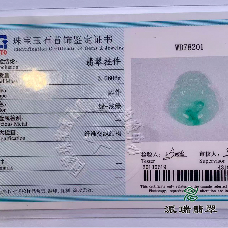 派瑞翡翠 翡翠挂件 糯种 浅绿