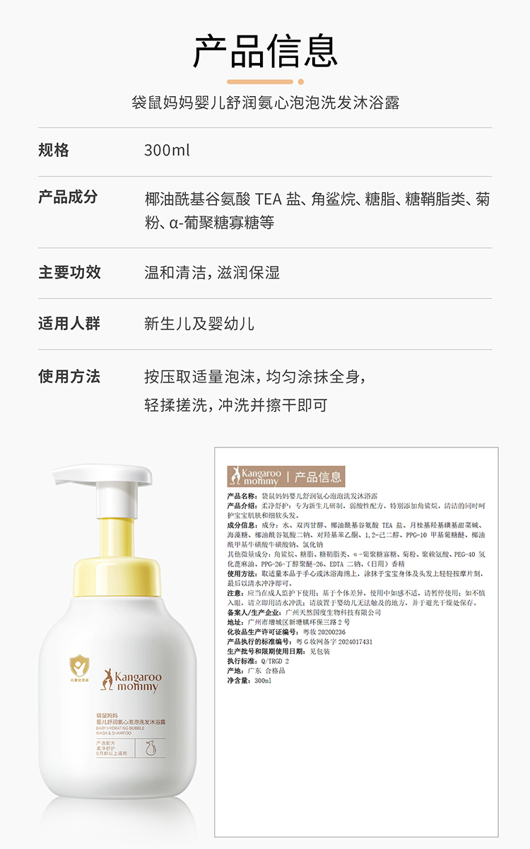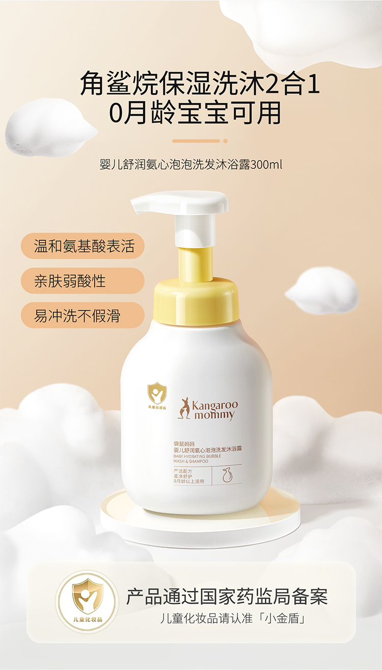 【买1送1】🔥宝宝沐浴露 温和清洁不紧绷 婴儿舒润氨心泡泡洗发沐浴露300ml