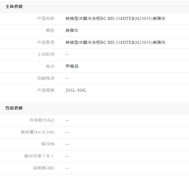 美菱 冰柜 BC/BD-256DTEB(G23033)典雅灰 201L-300L 单温柜 顶开 转换型冷藏冷冻柜