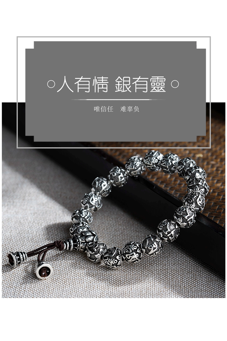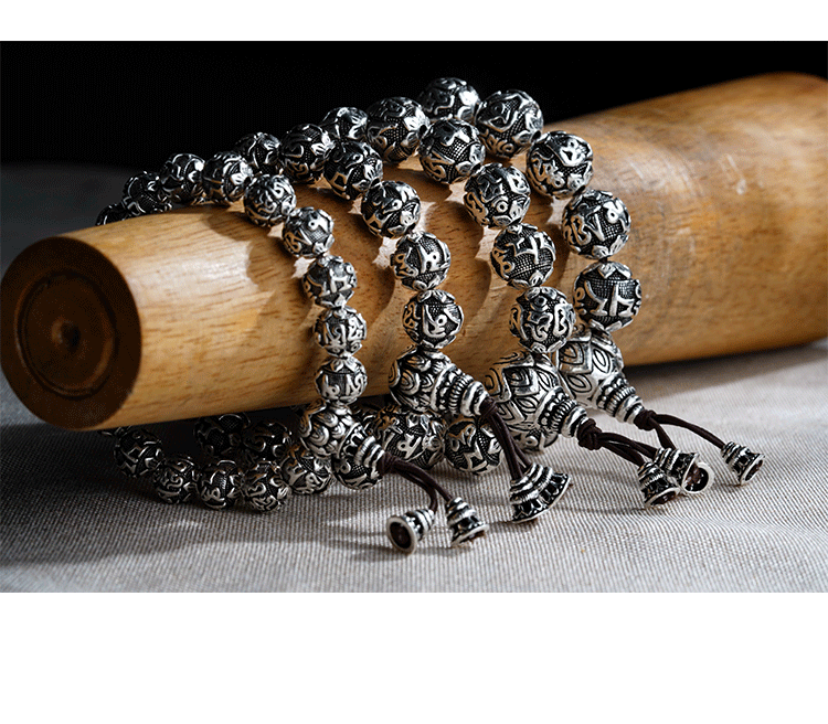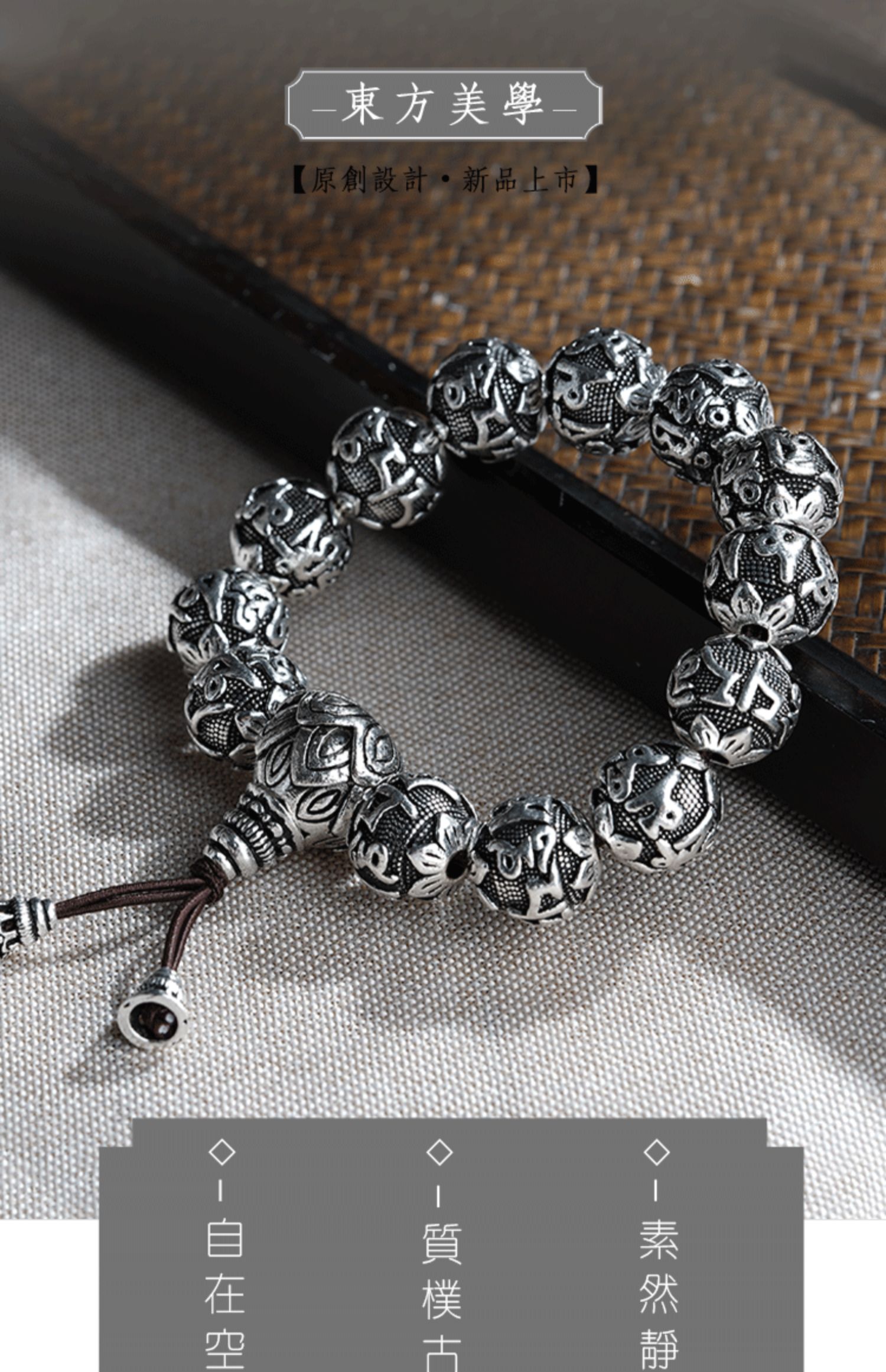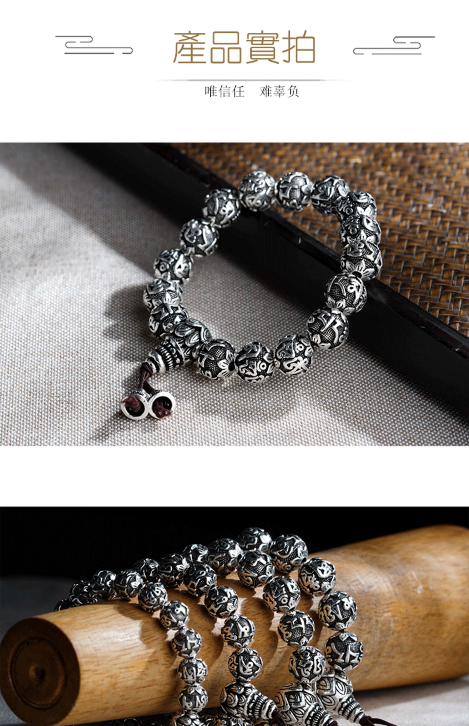 【六字箴言】子佩集S990银真言手串【多规格】仿古手链203