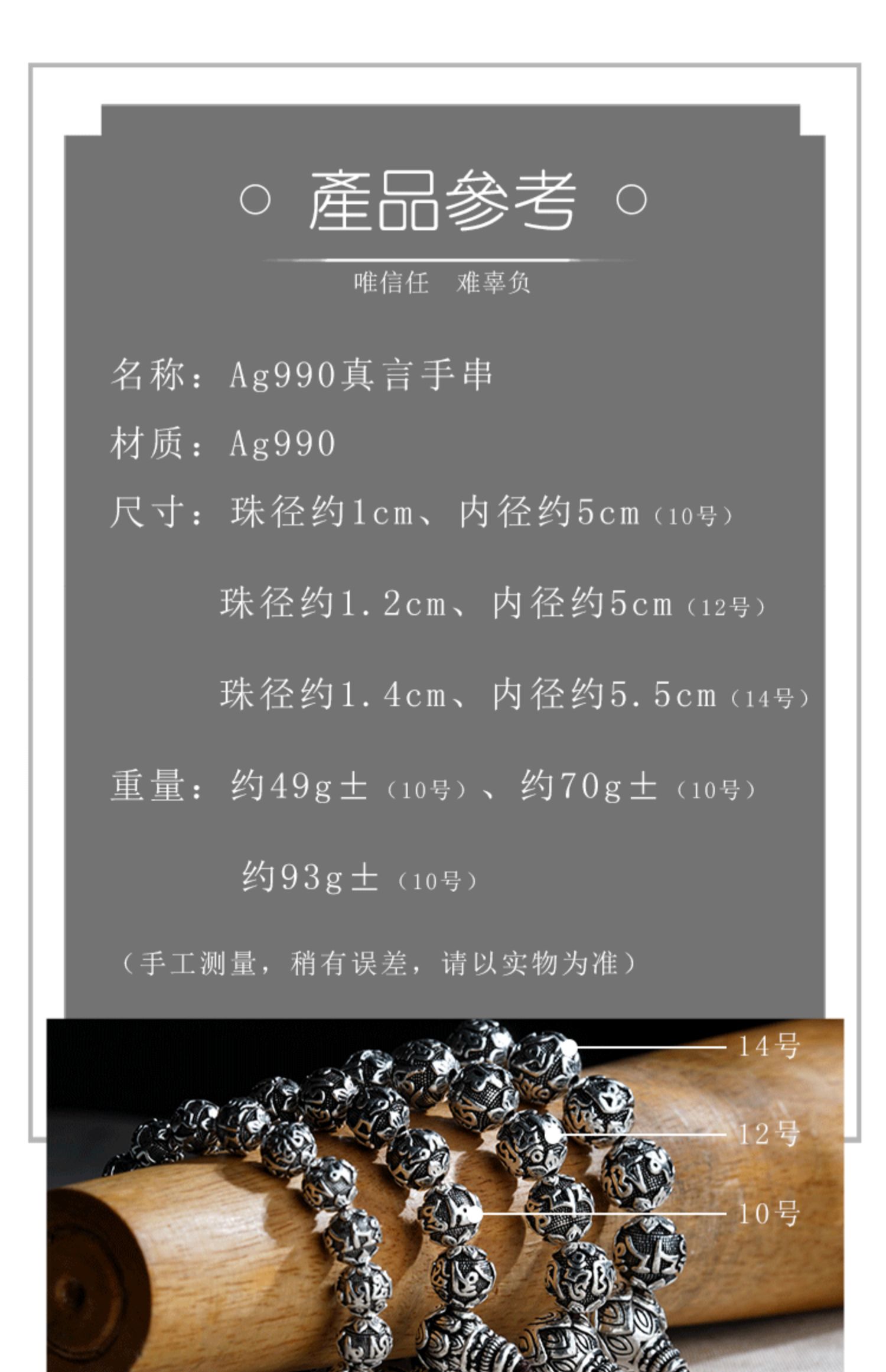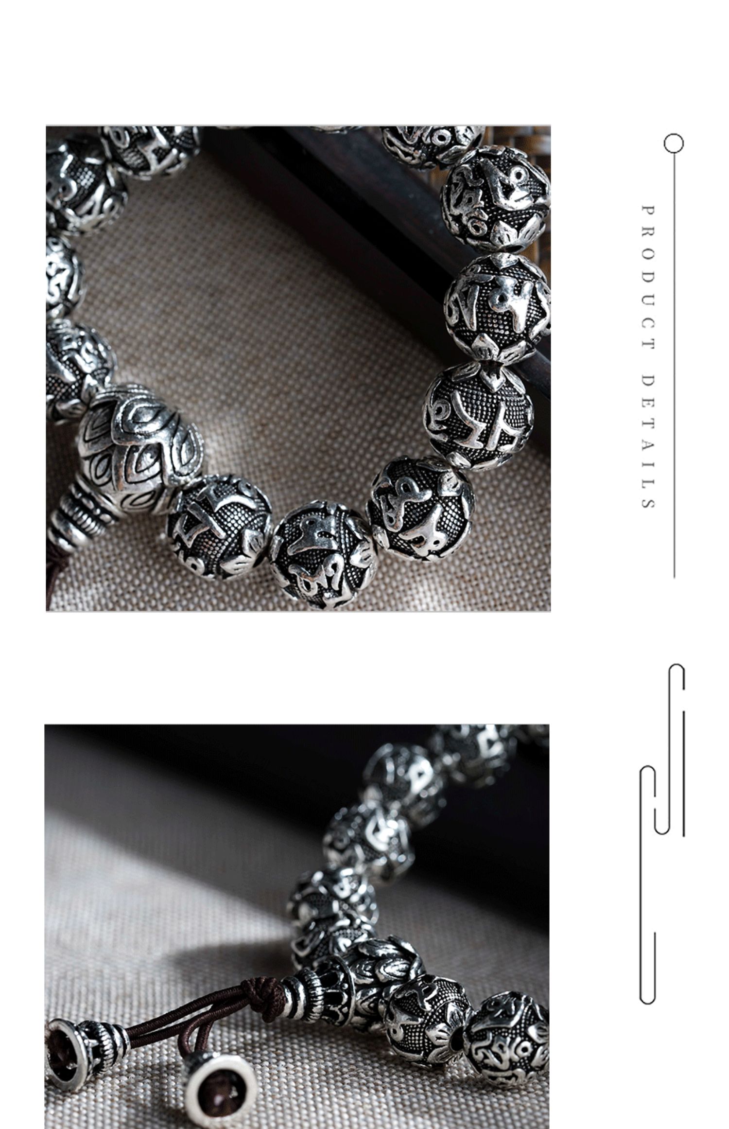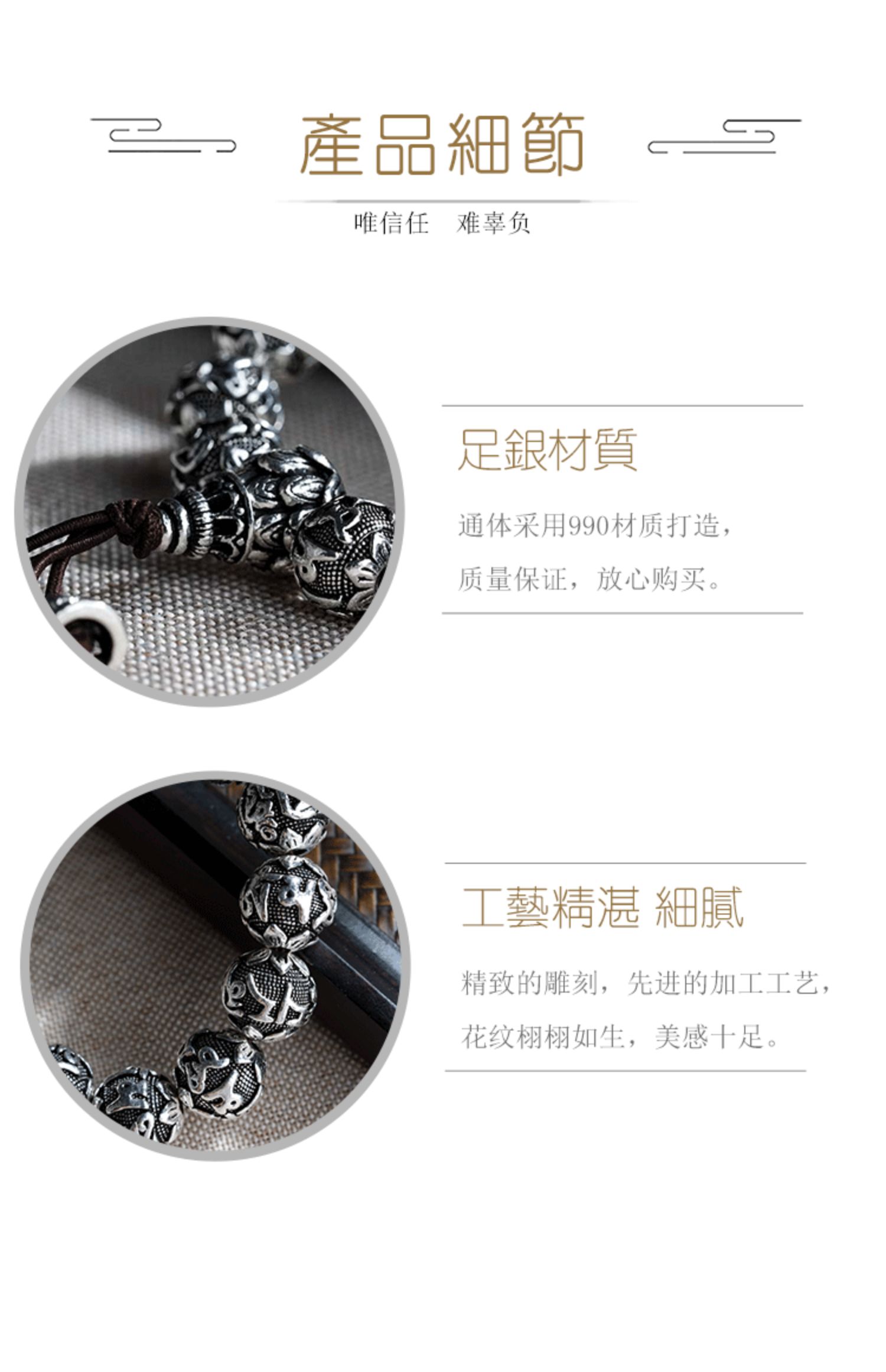 【六字箴言】子佩集S990银真言手串【多规格】仿古手链203