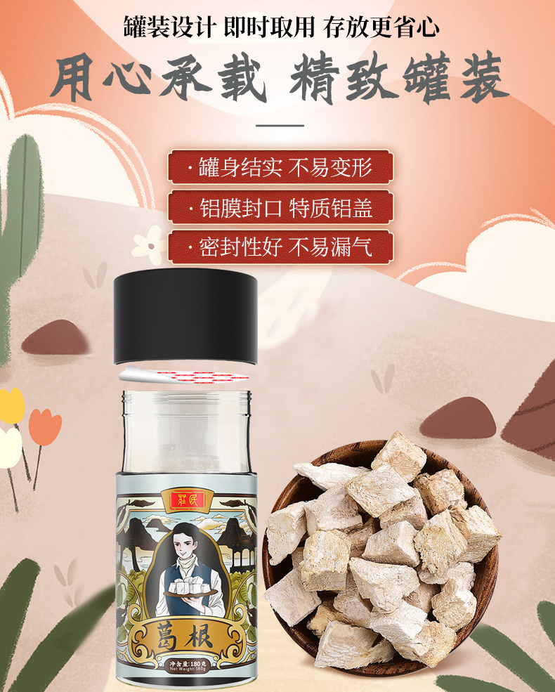 庄民 葛根块 葛根片 颗颗精选无碎好货 茶叶花草茶泡水 非葛根粉 葛根木瓜魔芋搭配伴侣180g/罐