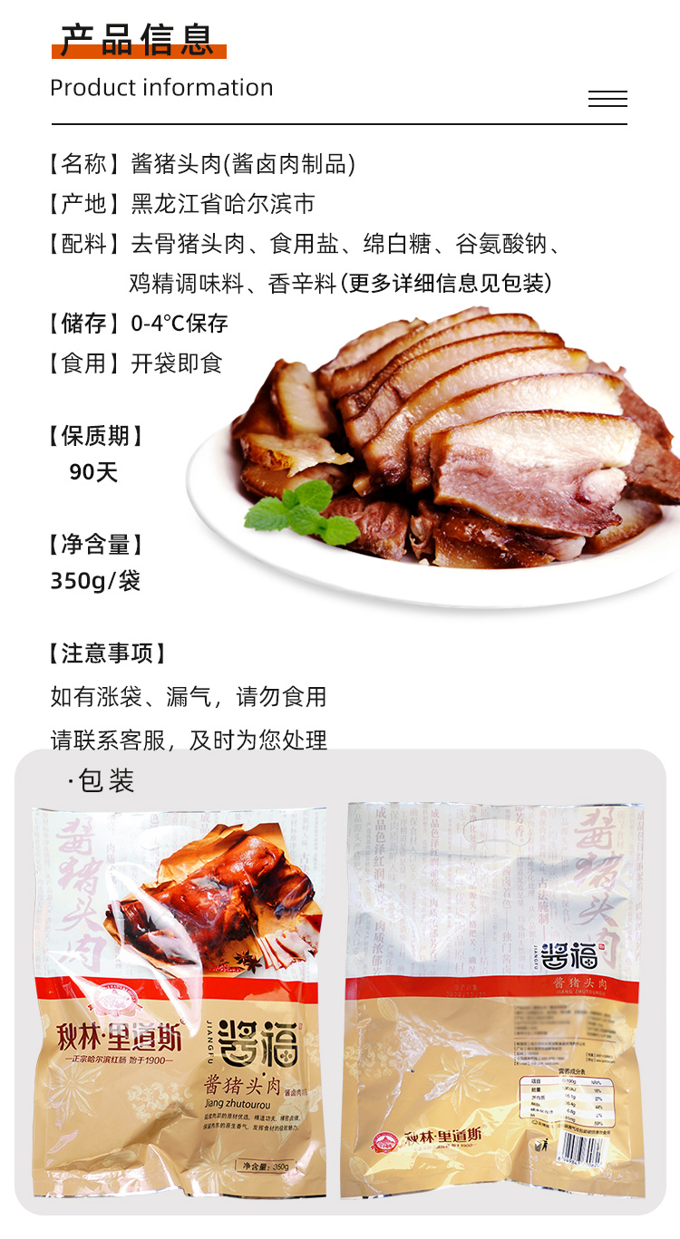 秋林里道斯酱福猪头肉350g二月二吃猪头肉现货抢先订