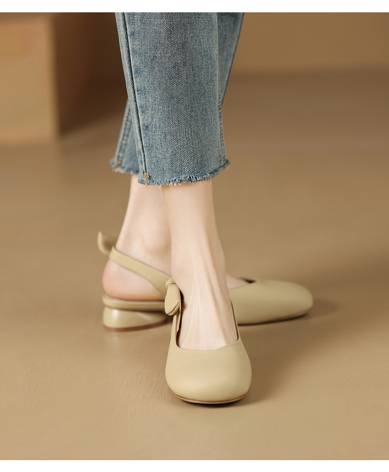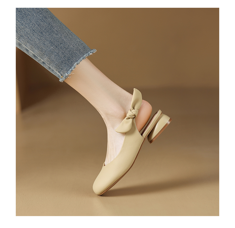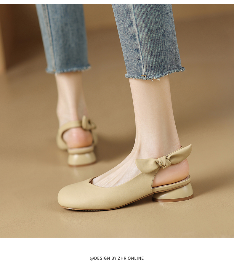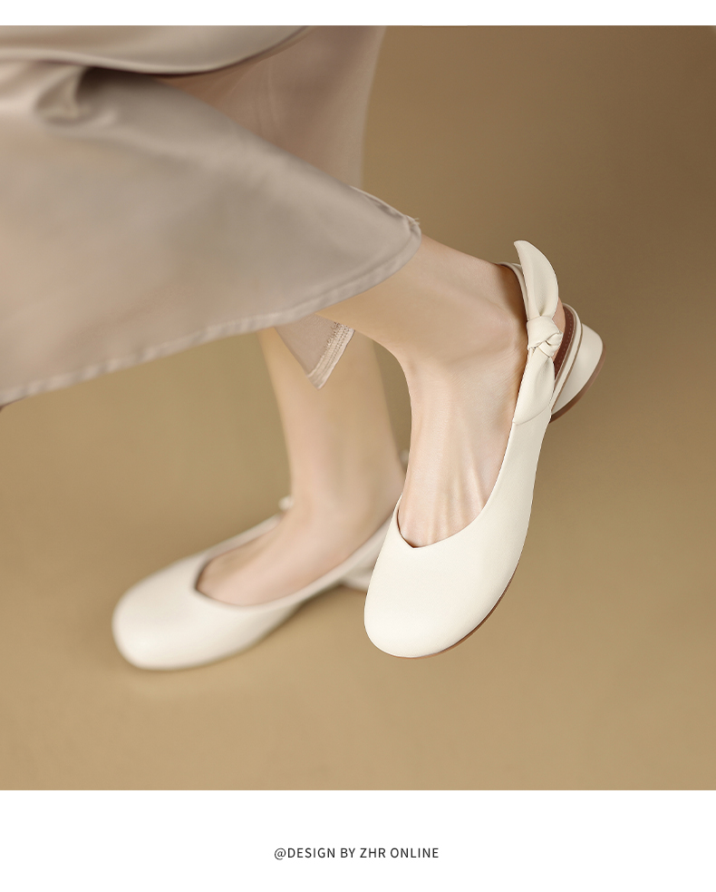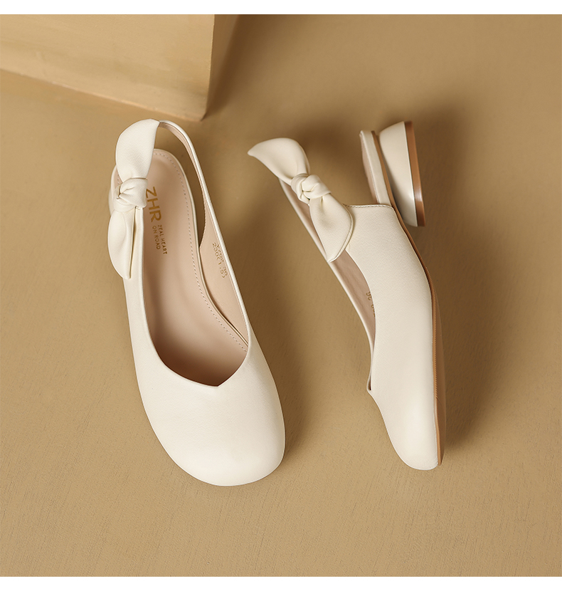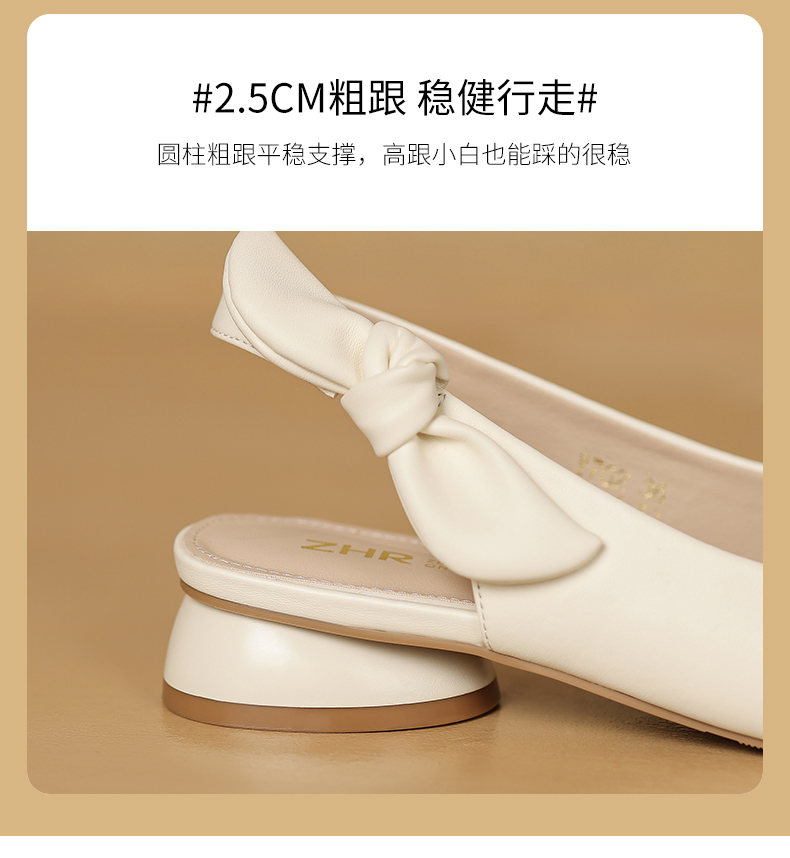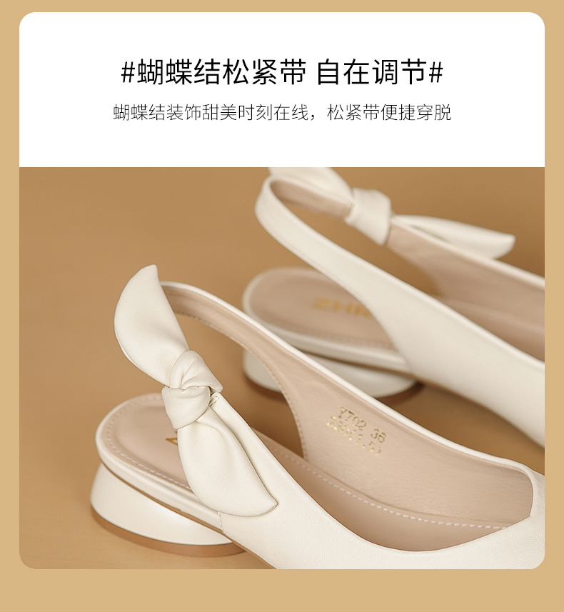 ZHR甜美蝴蝶结凉鞋女2023春新款法式小皮鞋纯欲仙女风单鞋一脚蹬
