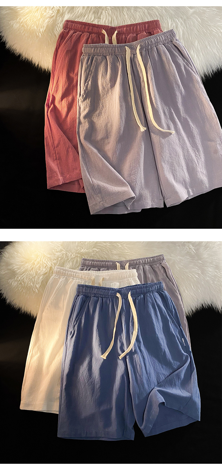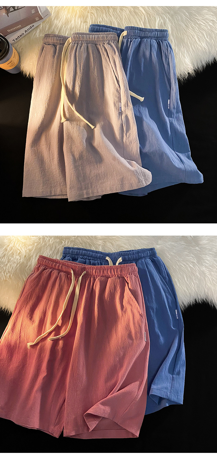 【薄款棉麻短裤男士】休闲运动宽松冰丝速干五分裤子 沙滩亚麻中短裤