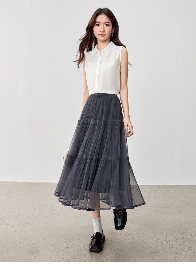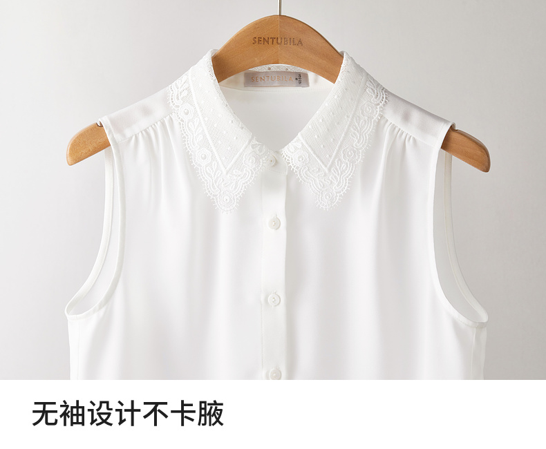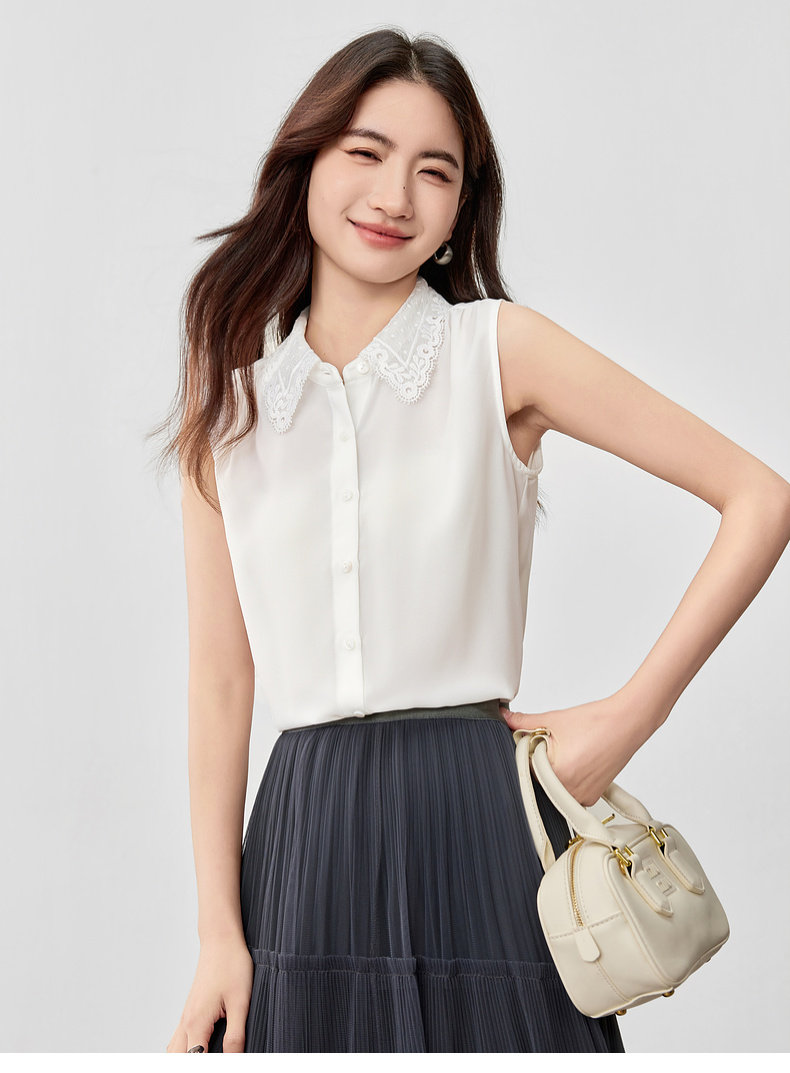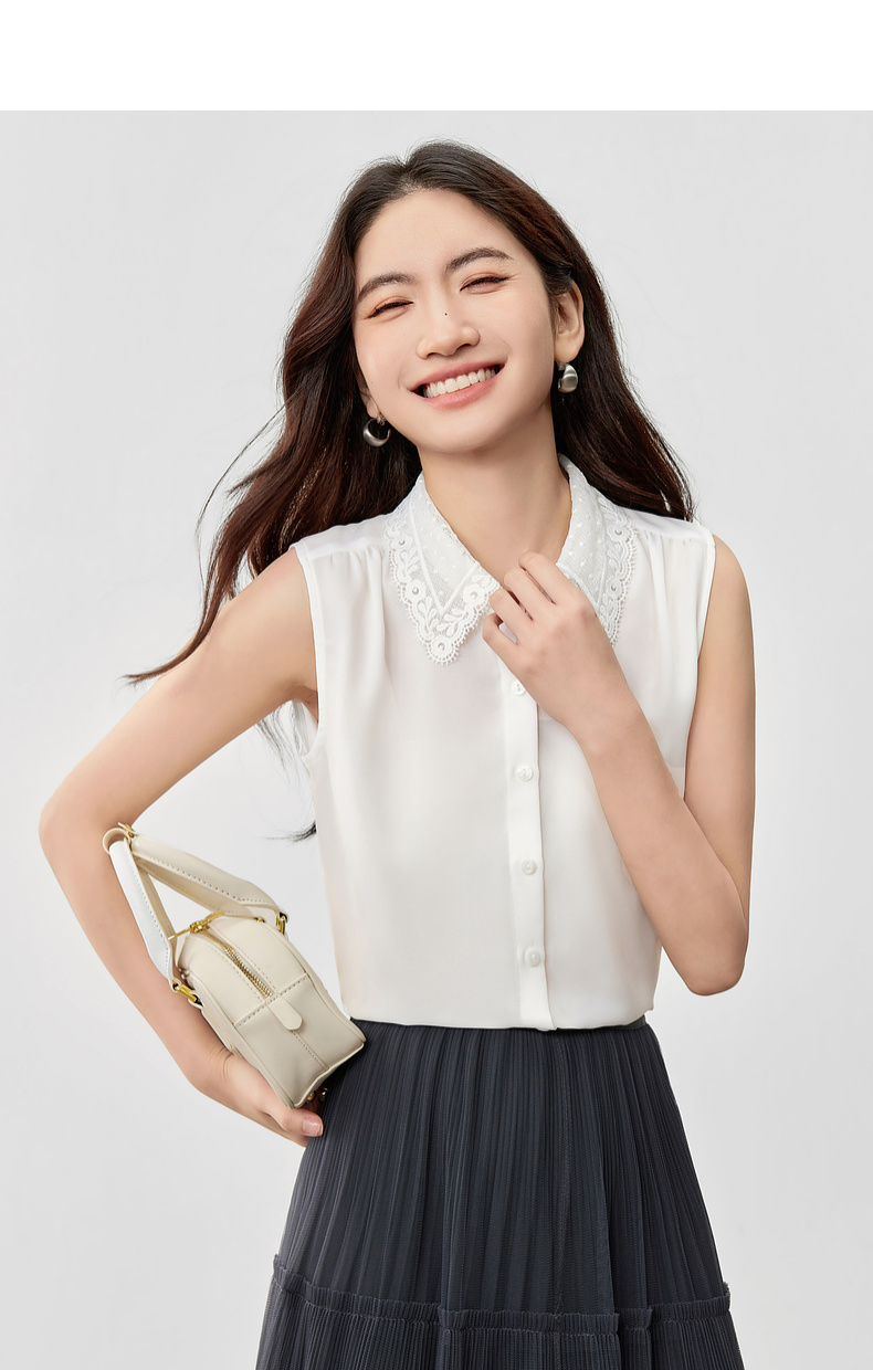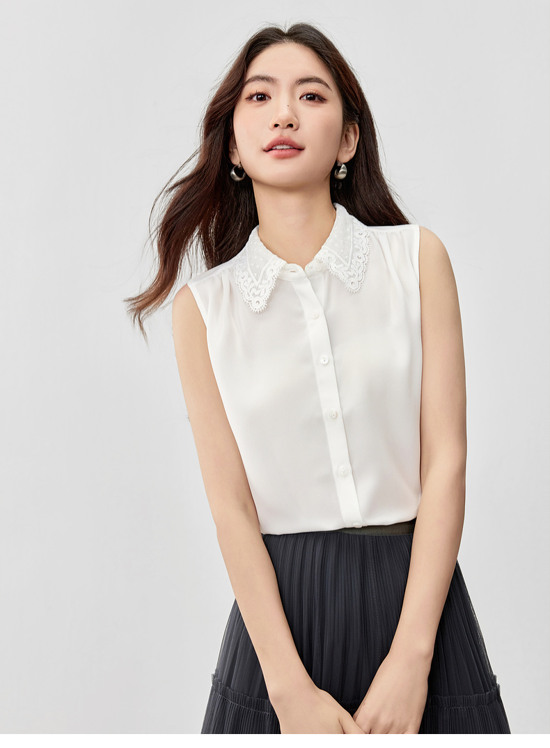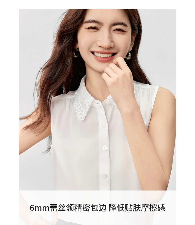 【内购】蕾丝领通勤叠穿利器雪纺肌理感无袖衬衫-153CA3270X