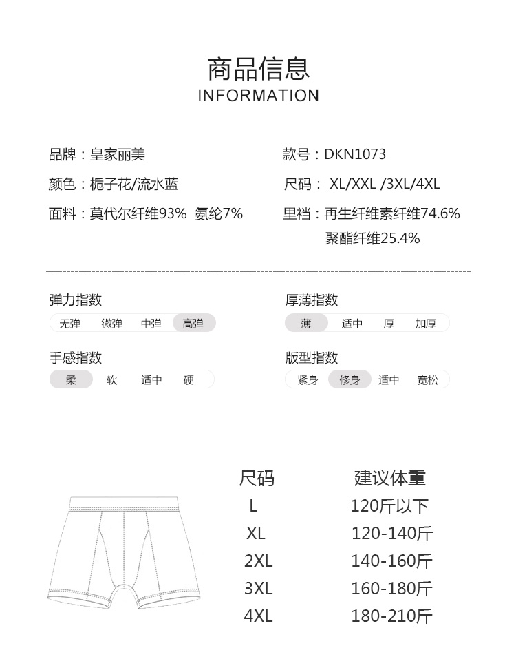 皇家丽美男士内裤平角裤衩大码宽松抗菌四角短裤头男生DKN1073